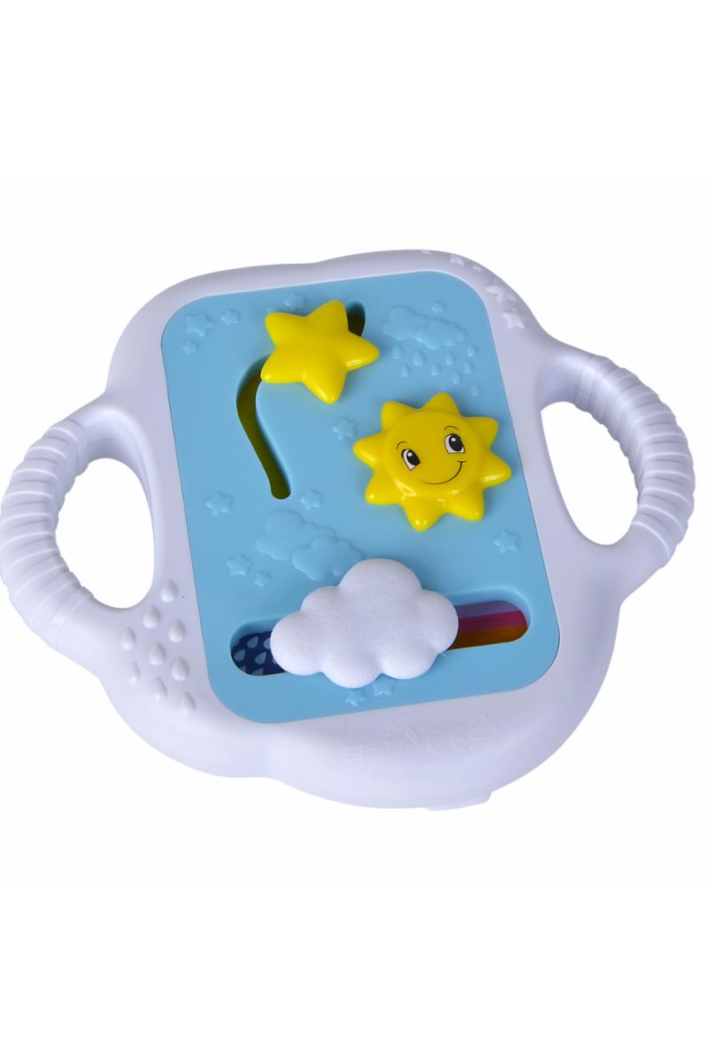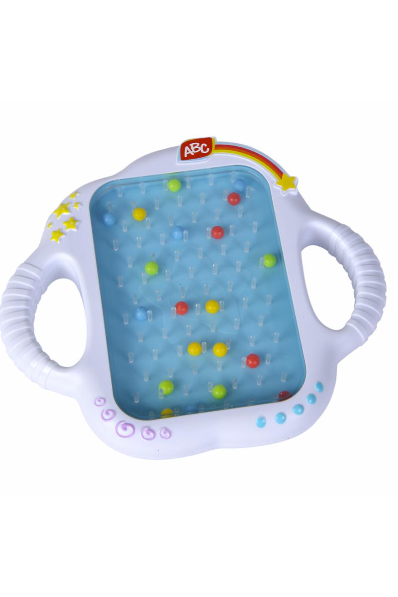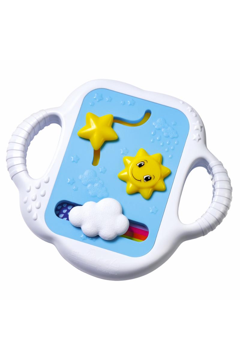 Aktivitetsleke fra ABC med kuler som skaper regnlyd på den ene siden og glidere som lager lyd på den andre siden. 15 cm. Fra 9 måneder.