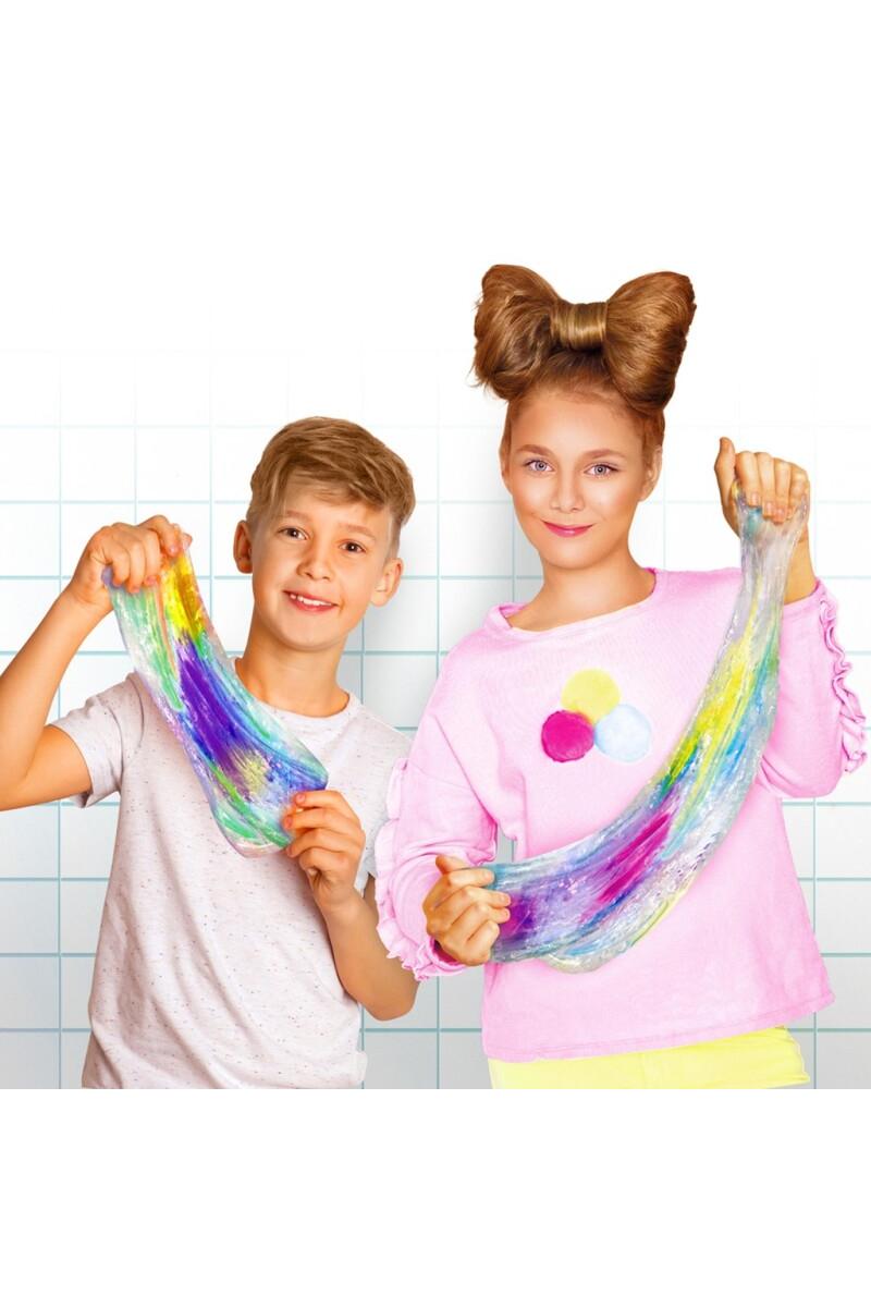 Lag ditt eget helt fantastiske slim med batikkeffekt! Det gjennomsiktige slimet er klart til bruk, du trenger bare å velge en farge, legge til glitter og deretter blande det sammen for et slim med en fantastisk effekt. Så er det bare å strekke ut det blandede slimet og beundre arbeidet ditt.