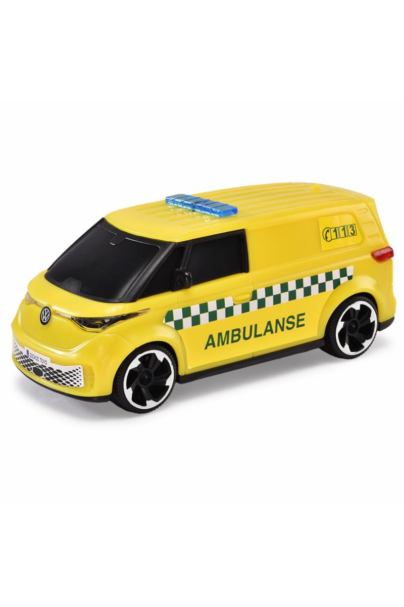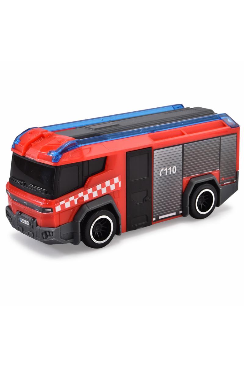 SOS-team fra Dickie Toys med norske redningsbiler, ambulanse, brannbil og politibil, med frihjul.