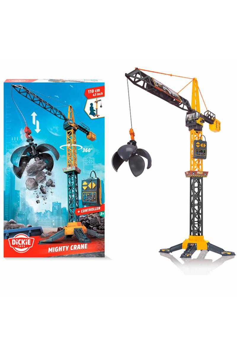 Stor radiostyrt kran fra Dickie Toys med fjernkontroll, rivekule med gripeklo og 360 graders roterbar cockpit. Kan kjøres venstre, høyre, opp og ned.