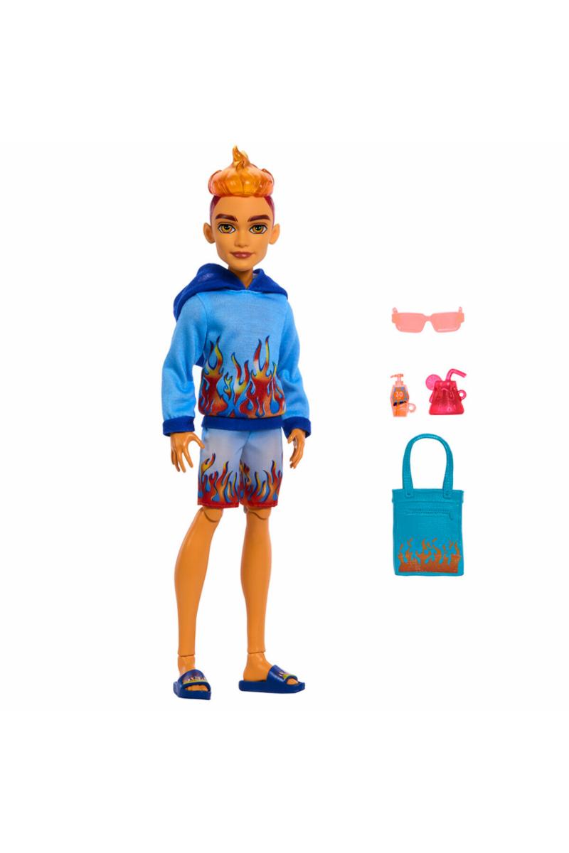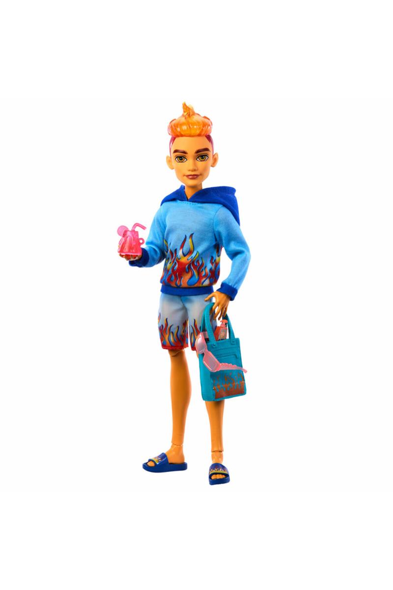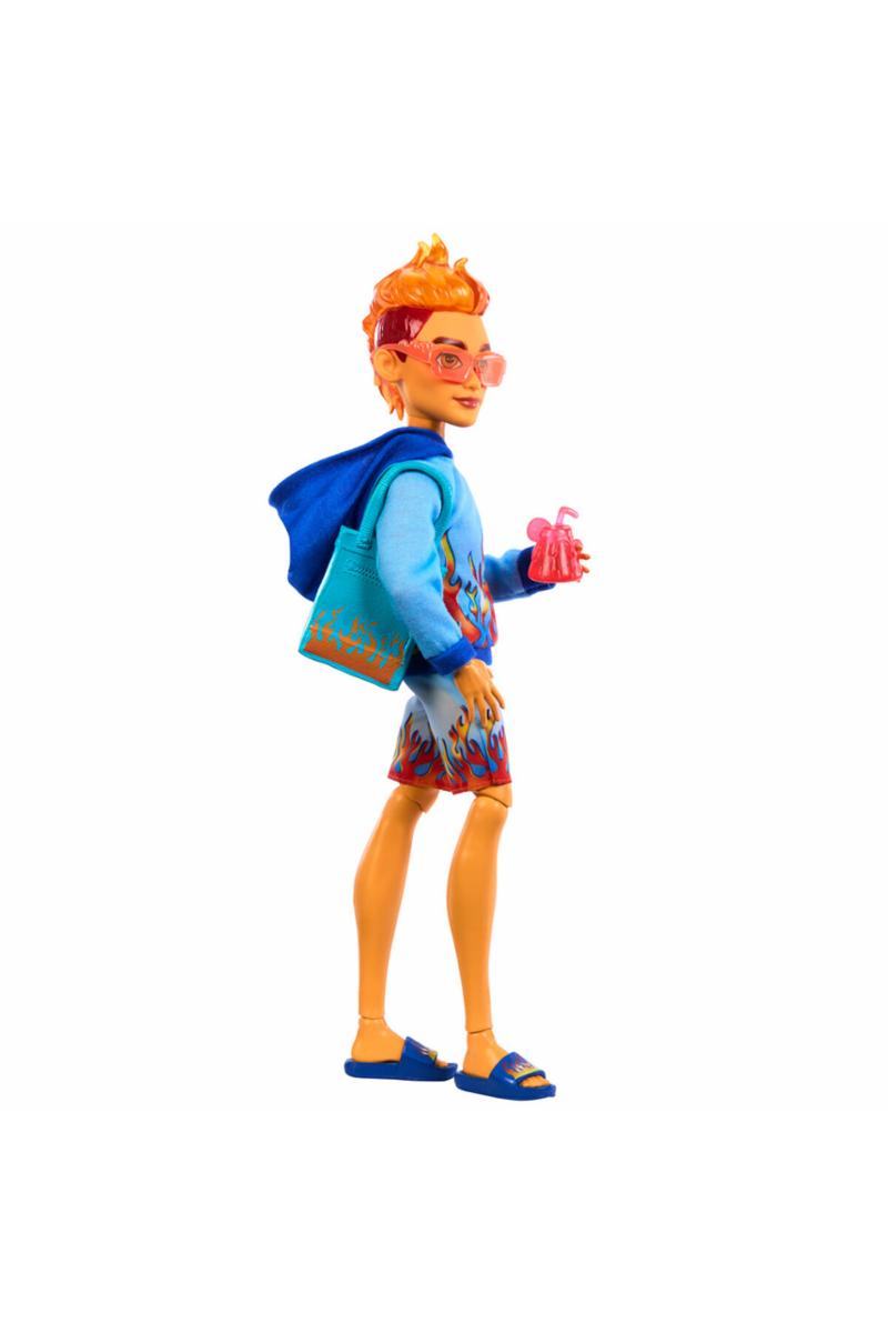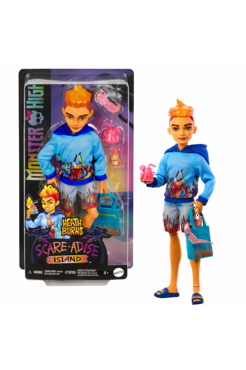 Denne Monster High-dukken er klar for en strandferie! Heath Burns er klar for å ha det hett på sin Scare-adise Island-ferie med en hettegenser med flammeprint, badebukser og tilbehør for historiefortelling.