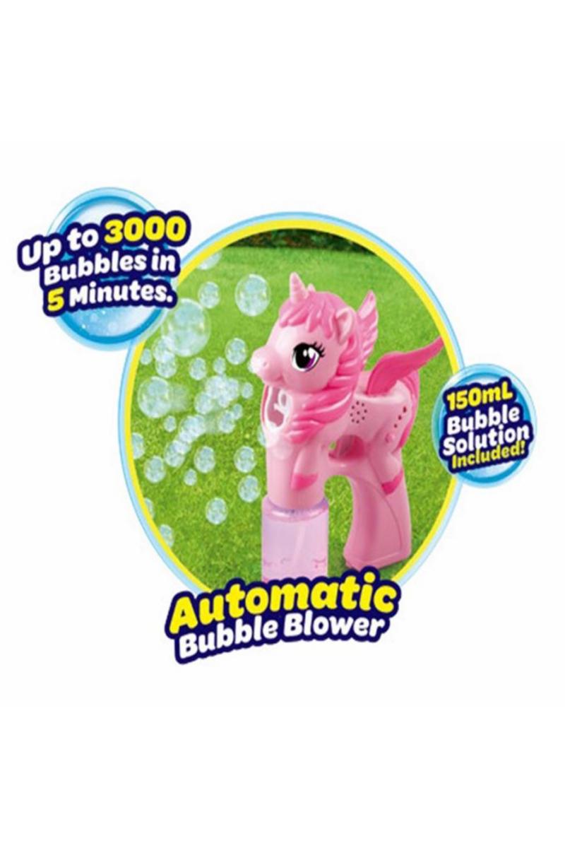 Kjempekul enhjørning såpeboblepistol med lyd og lys. Lager opp til 3000 bobler på 5 minutter.