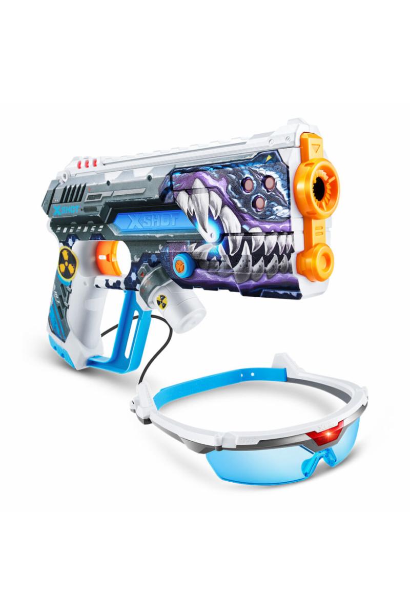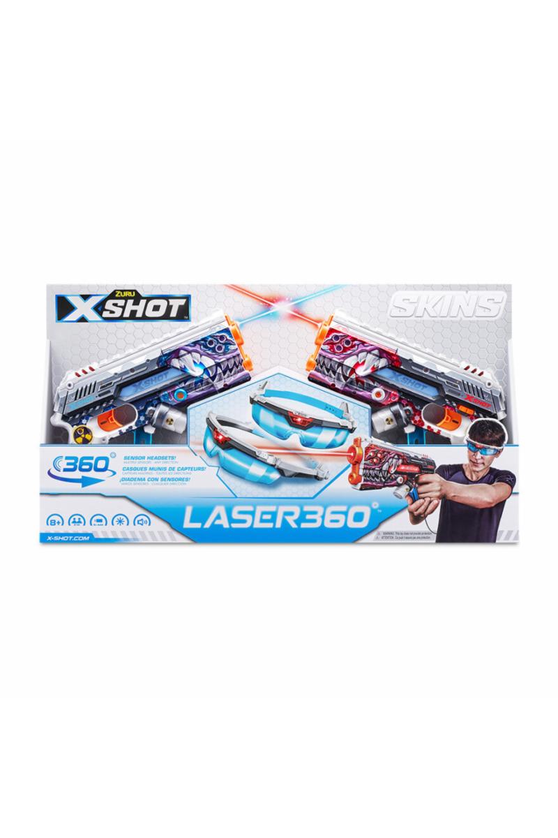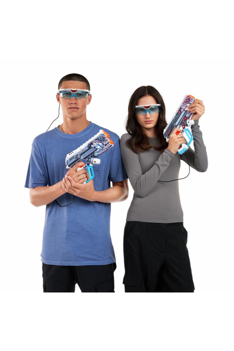 Er du klar for kamp med lys? Med X-Shot Skins Laser 360 er det på høy tid å finne frem laserrefleksene! Dette heftige settet gir deg alt du trenger for en actionfylt laser-kamp, enten du utfordrer vennene dine til en duell eller samler et helt lag! Settet kommer med to superkraftige laserblastere og to 360 graders sensorbriller som fanger infrarøde signaler fra alle vinkler, så ingen kan snike seg unna!