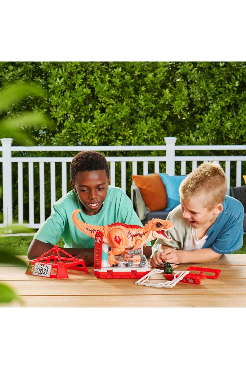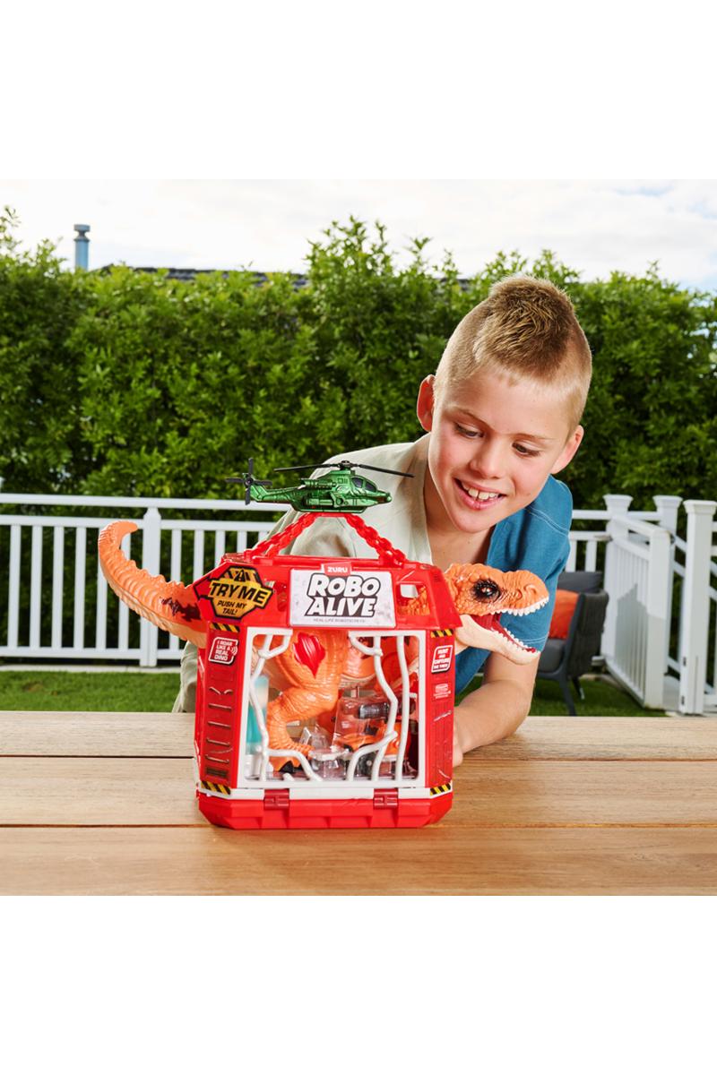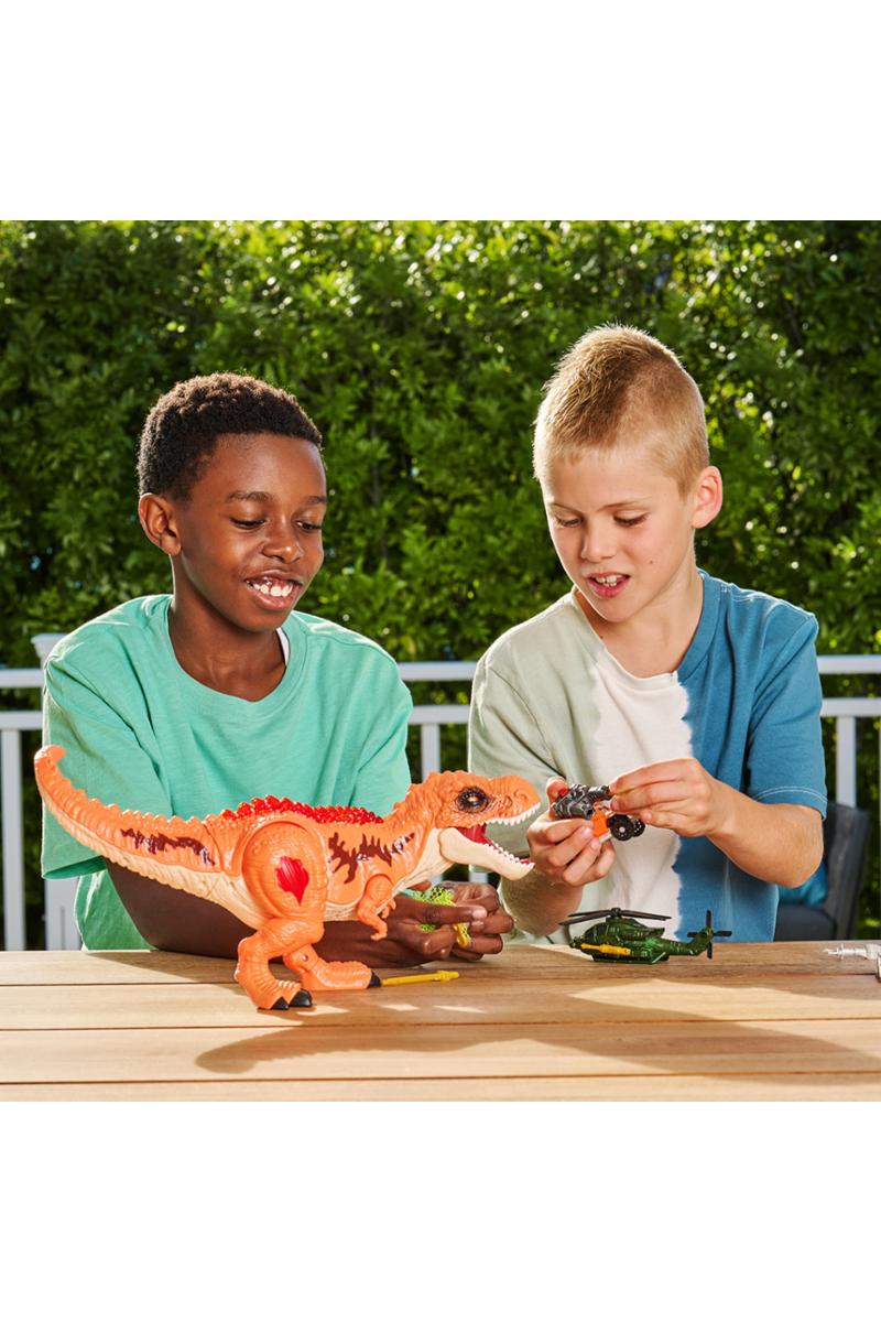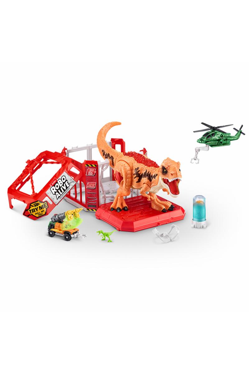 Bruk fellene, våpnene og verktøyene for å fange T-Rexen som har brytet seg løs fra buret sitt.