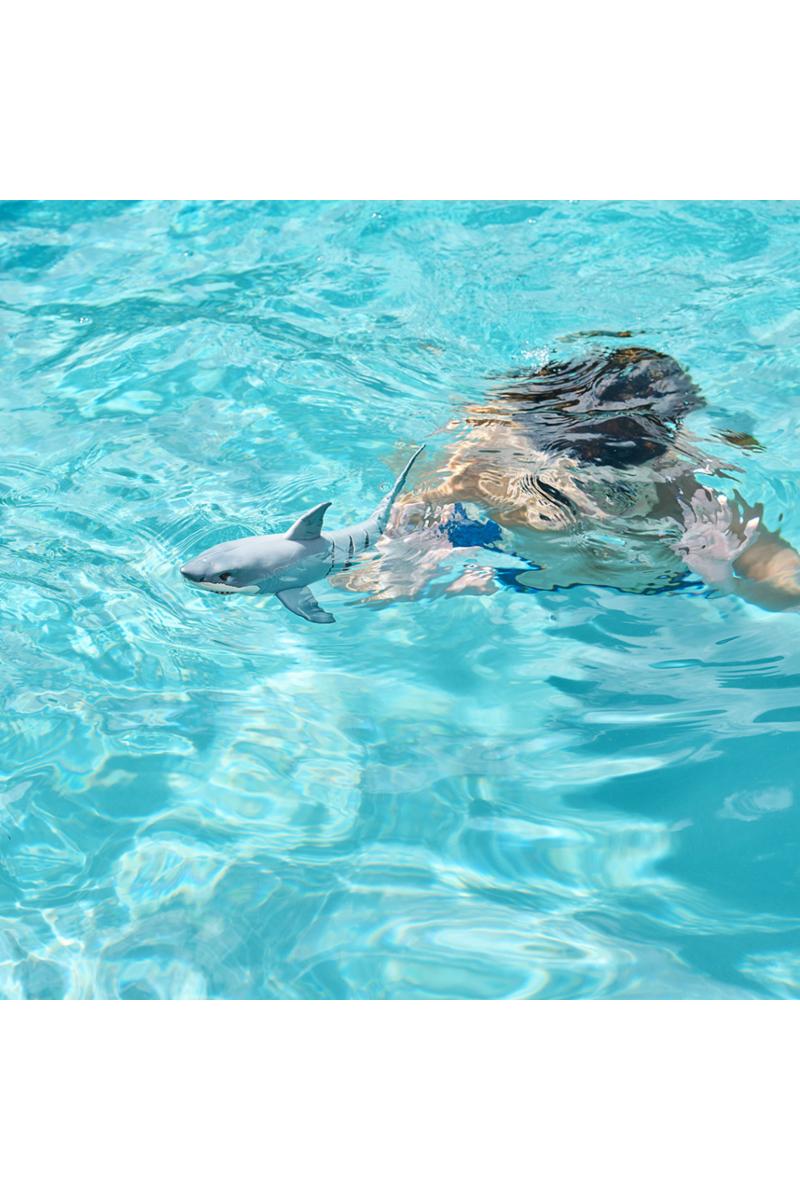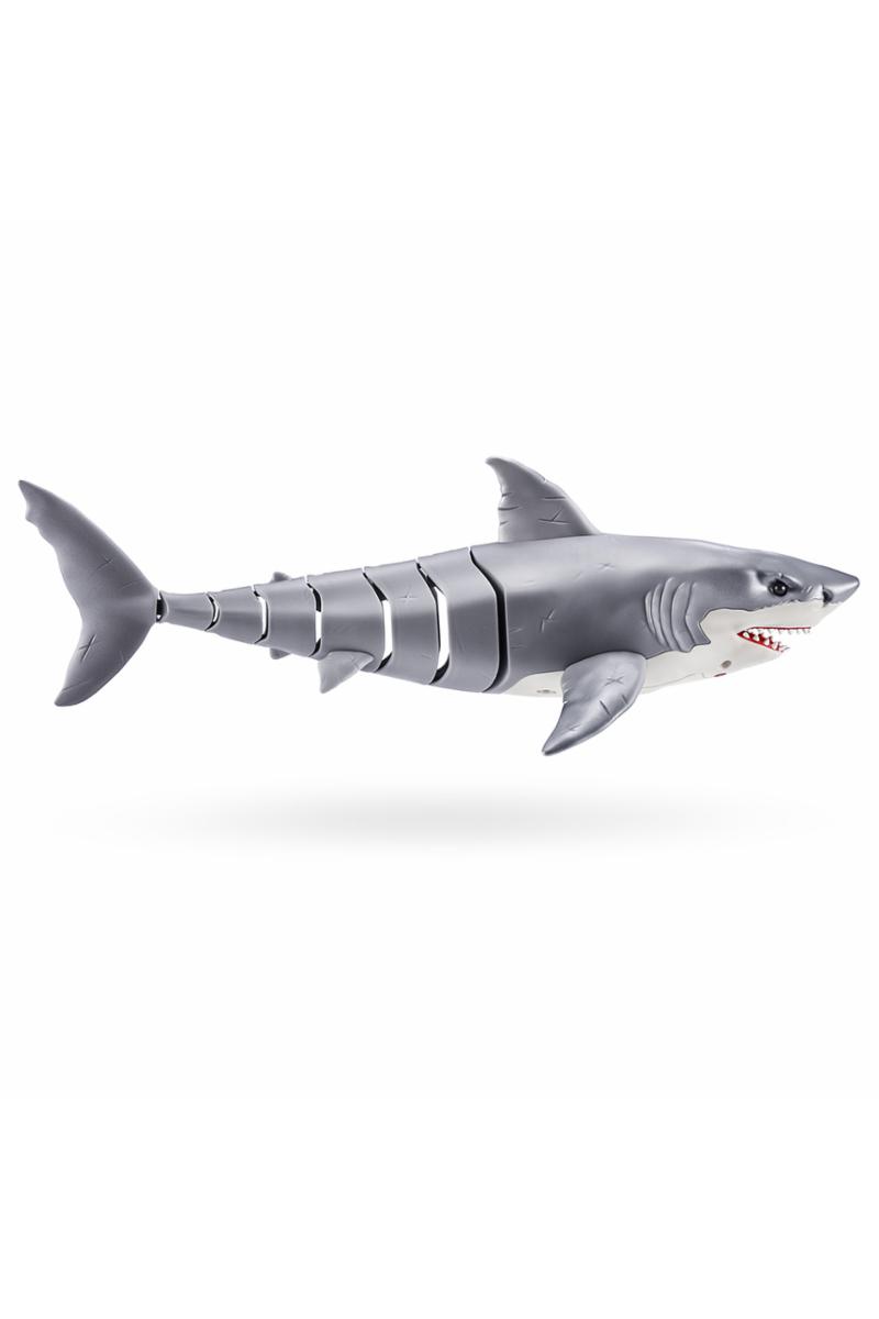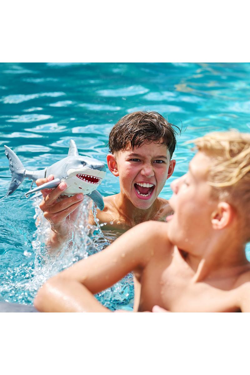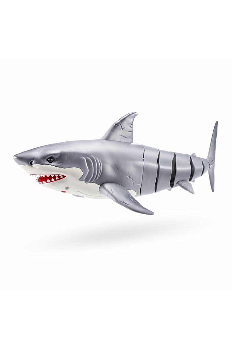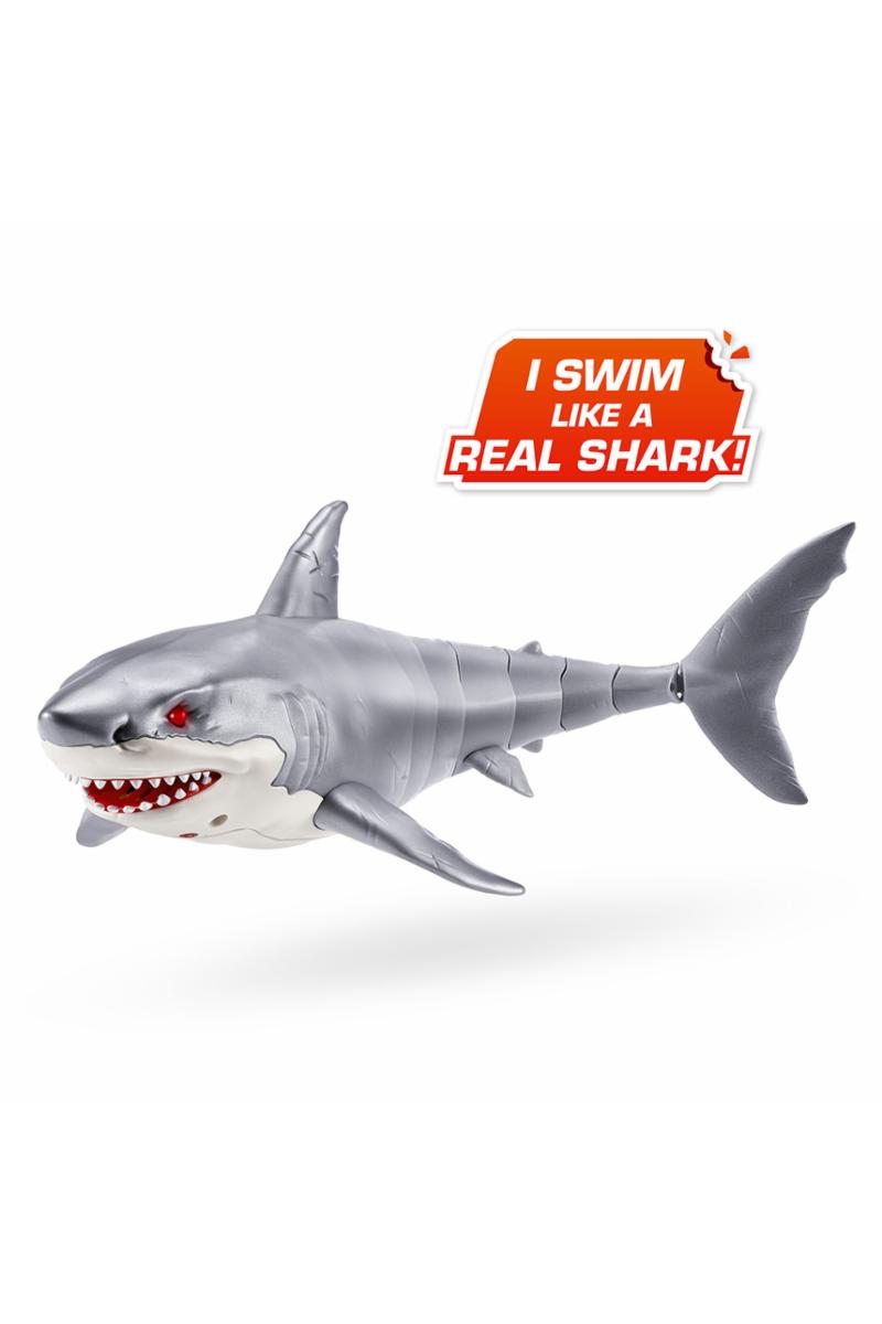 Hvithai fra Robo Alive med lysende røde øyne, den beveger seg akkurat som en ekte hai.