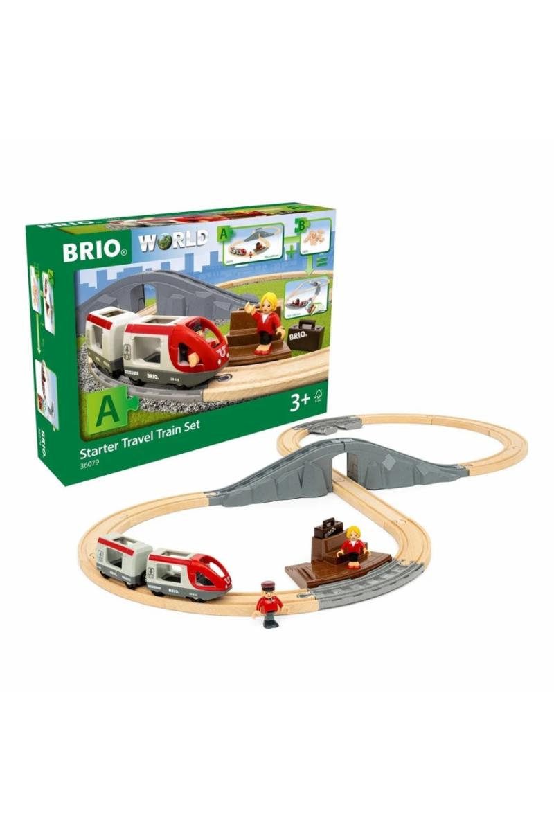 Starter Travel Train Set er alt du trenger for å lage ditt første togsett og begynne dine BRIO World-eventyr. Jernbanesettet består av 22 deler og har en klassisk 8-sporsbane med tunnel og bro i midten og en stasjonsplattform for figurlek. Plasser sjåførfiguren foran på toget, hent opp passasjeren med bagasjen som venter på perrongen, og begynn turen rundt BRIOs ikoniske trespor.