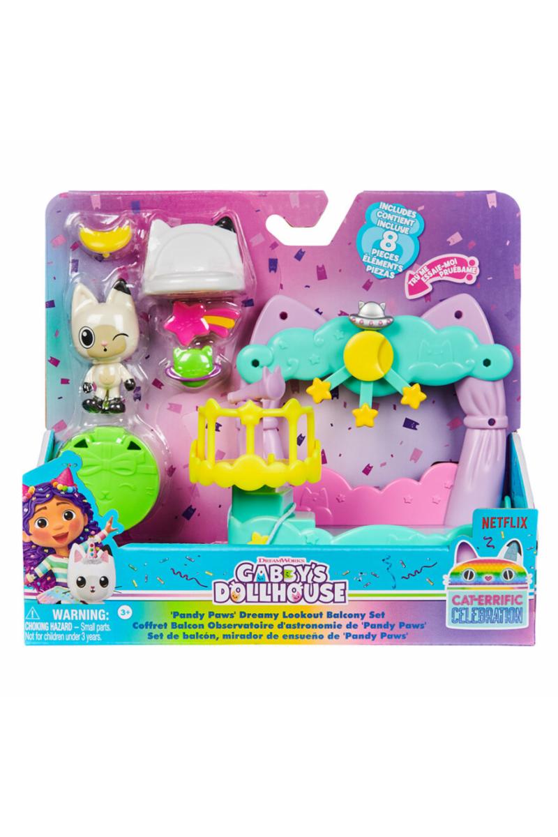 Dette sjarmerende settet inkluderer en balkong og Pandy. Perfekt for å stimulere fantasifull lek, settet har fargerike detaljer og interaktive elementer som lar barna skape sine egne magiske eventyr. Ideelt for fans av Gabby's Dollhouse, tilfører dette settet et snev av magi og spenning til enhver lekestund.