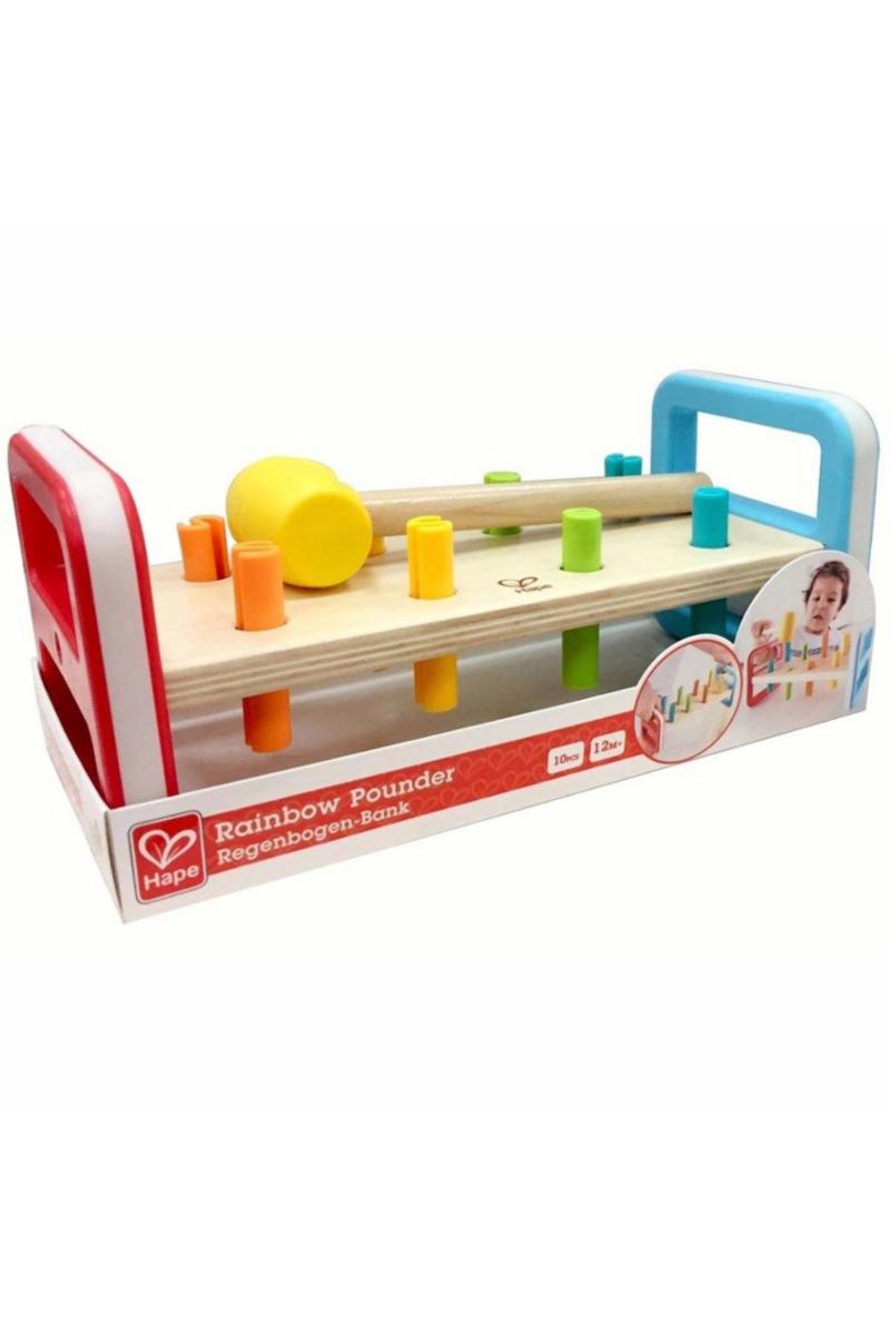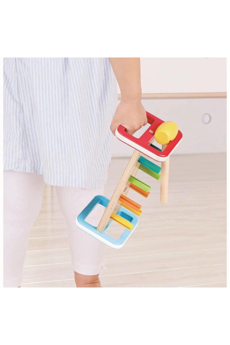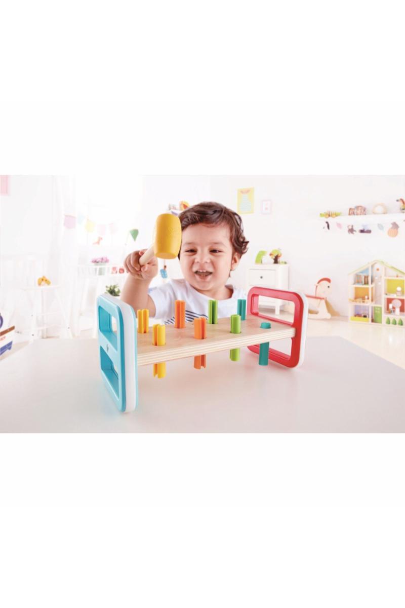 Denne søte bankende benken lærer barna om farger og telling. Hammer inn alle pinnene, og snu den deretter for å starte på nytt.