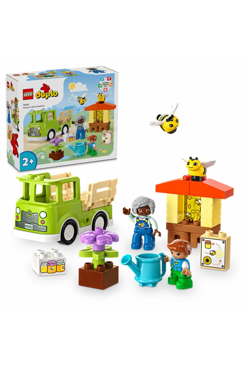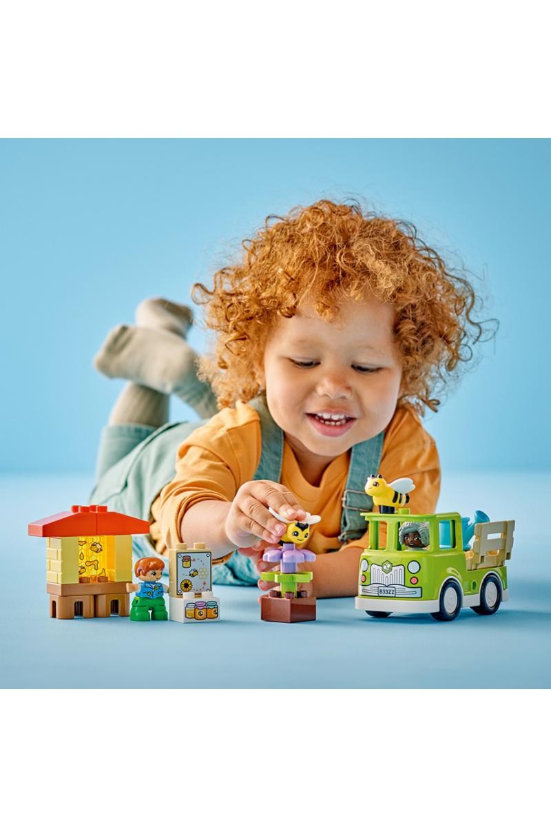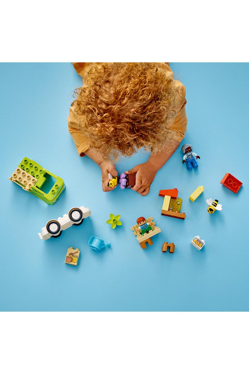 Vekk småbarns interesse for en utrolig viktig insektart, bien! Settet LEGO® DUPLO® Town Stell av bier og bikuber er et fargerikt byggesett som lærer førskolebarn om hvordan disse viktige pollensprederne lever og lager honning. Barn kan vanne blomstene for å få dem til å vokse. Biene tar med seg nektar til bikuben sin for å lage en vokskake. Figurene av en mormor og en gutt kan samle inn honningen i krukker og kjøre lastebilen til markedet for å selge den der.