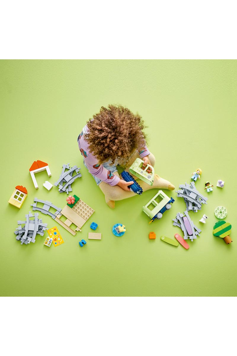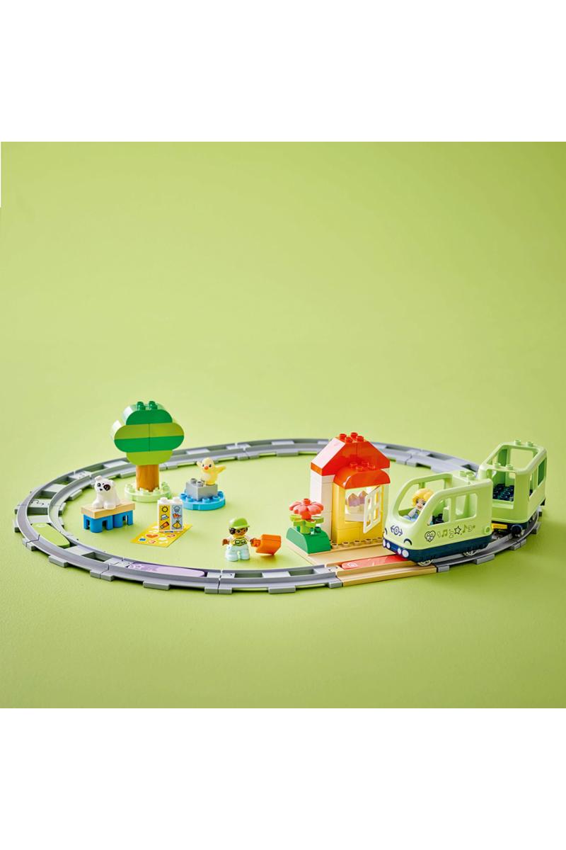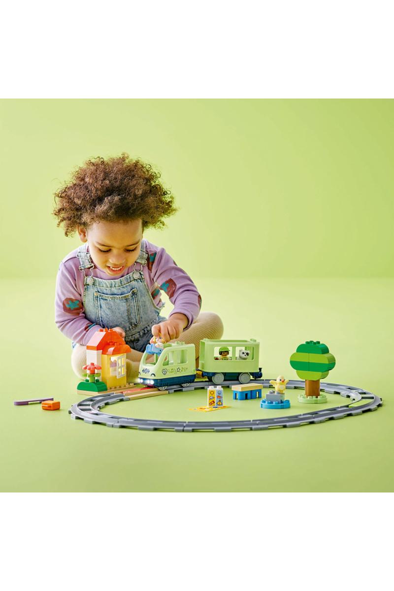 Med dette interaktive togsettet kan små barn velge reisemål for ferien sin, tilpasse skinnegangen og legge ut på spennende togturer, ledsaget av både lys og lyder. Den interaktive gratisappen LEGO® DUPLO® Interactive Trains gjør leken enda morsommere og lar barn styre toget med en bærbar elektronisk enhet. Appen inspirerer også hele familien til å skape alternative reisemålsmodeller.