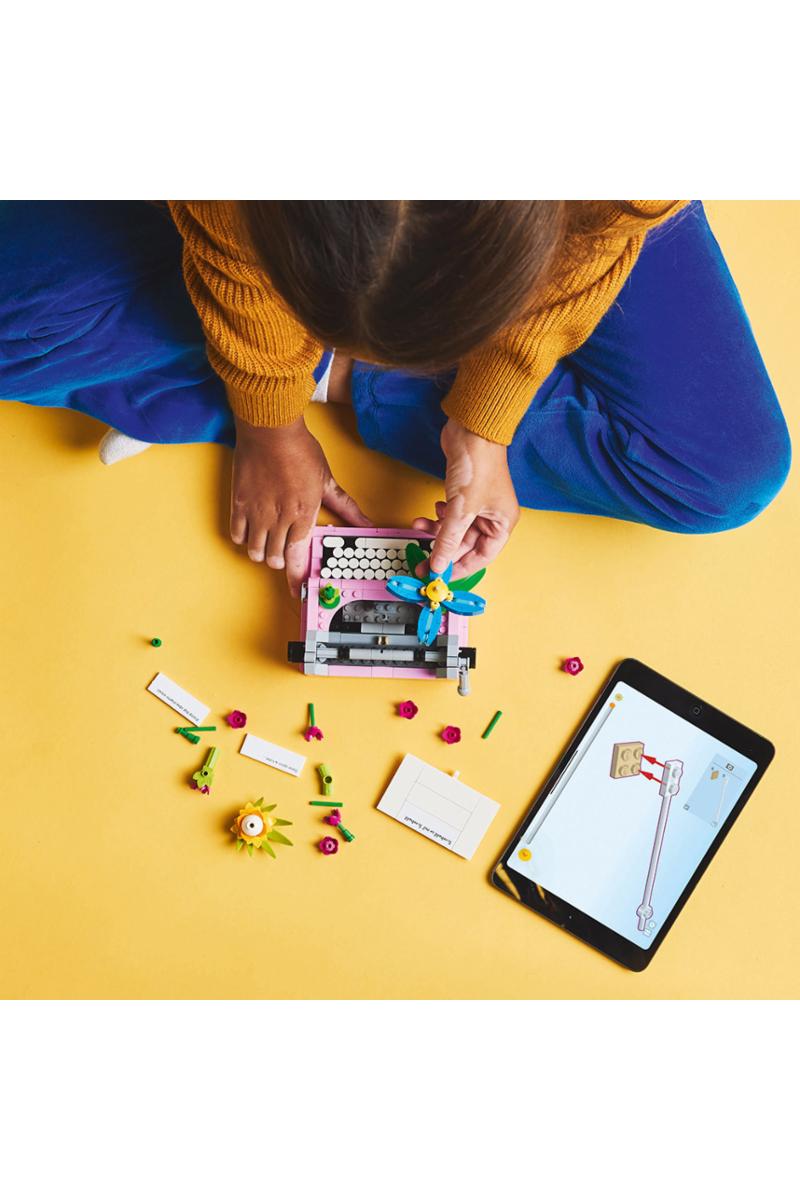 Gi rommet stil og eleganse med det vakre settet Skrivemaskin med blomster. Den imponerende vintagemodellen er pyntet med fire klossebygde blomster og har bevegelig tastatur og valse. Kan bygges om til en keytar med flere blomster eller en blomsterpotte med penn og notisblokk. Hver modell kan i tillegg dekoreres med fargerike klistremerker! Du velger med dette fantastisk flotte 3-i-1-settet!