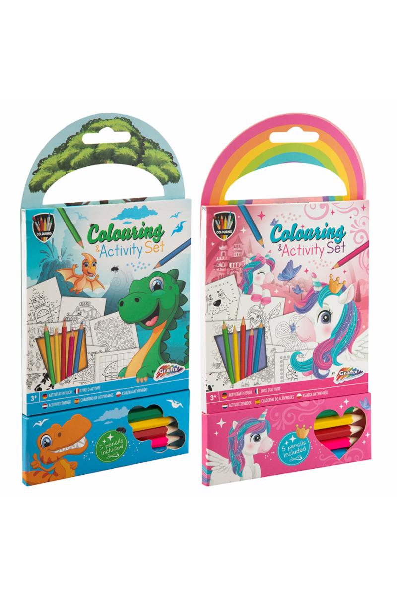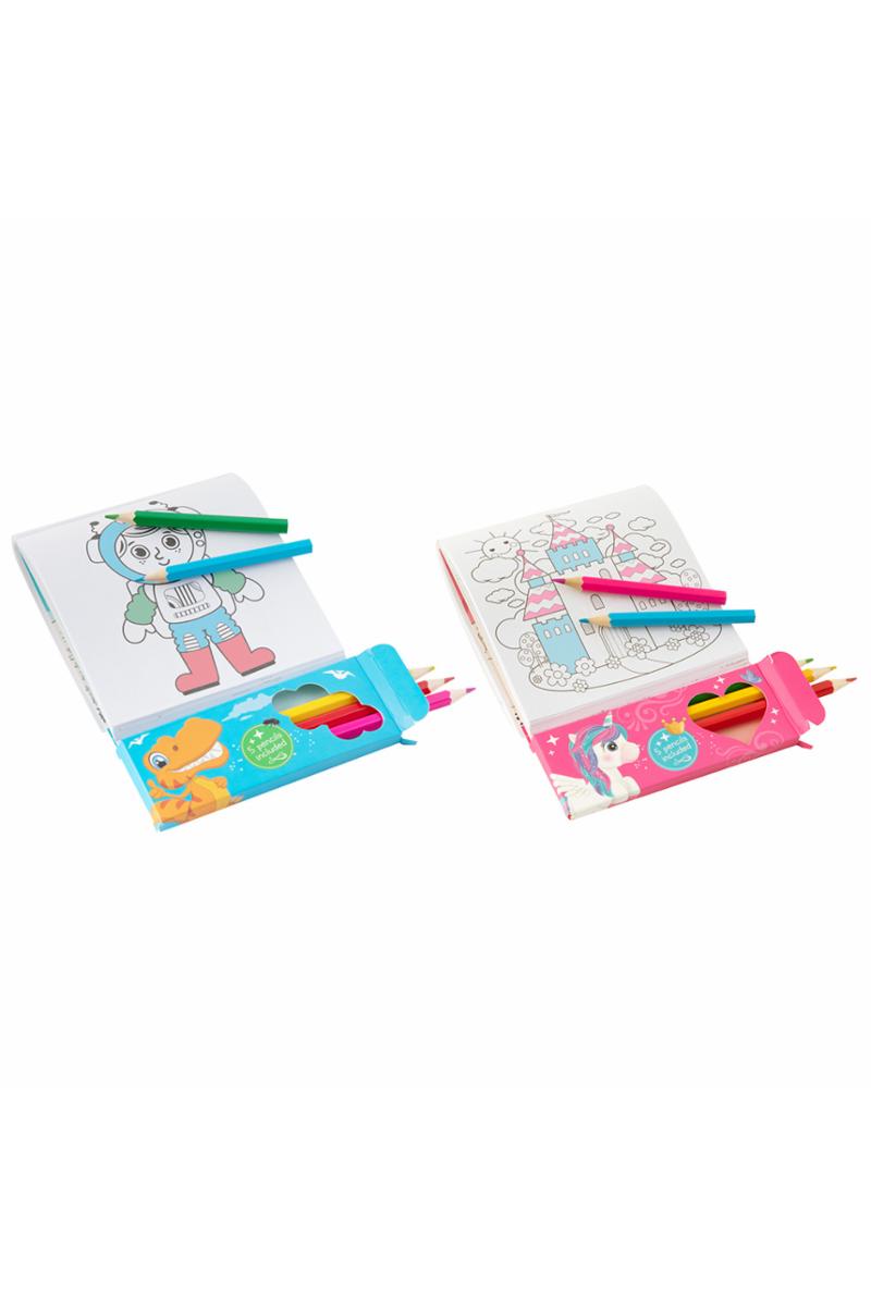 Fargebok som inkluderer 5 ulike fargeblyanter. Velg mellom to ulike stiler.