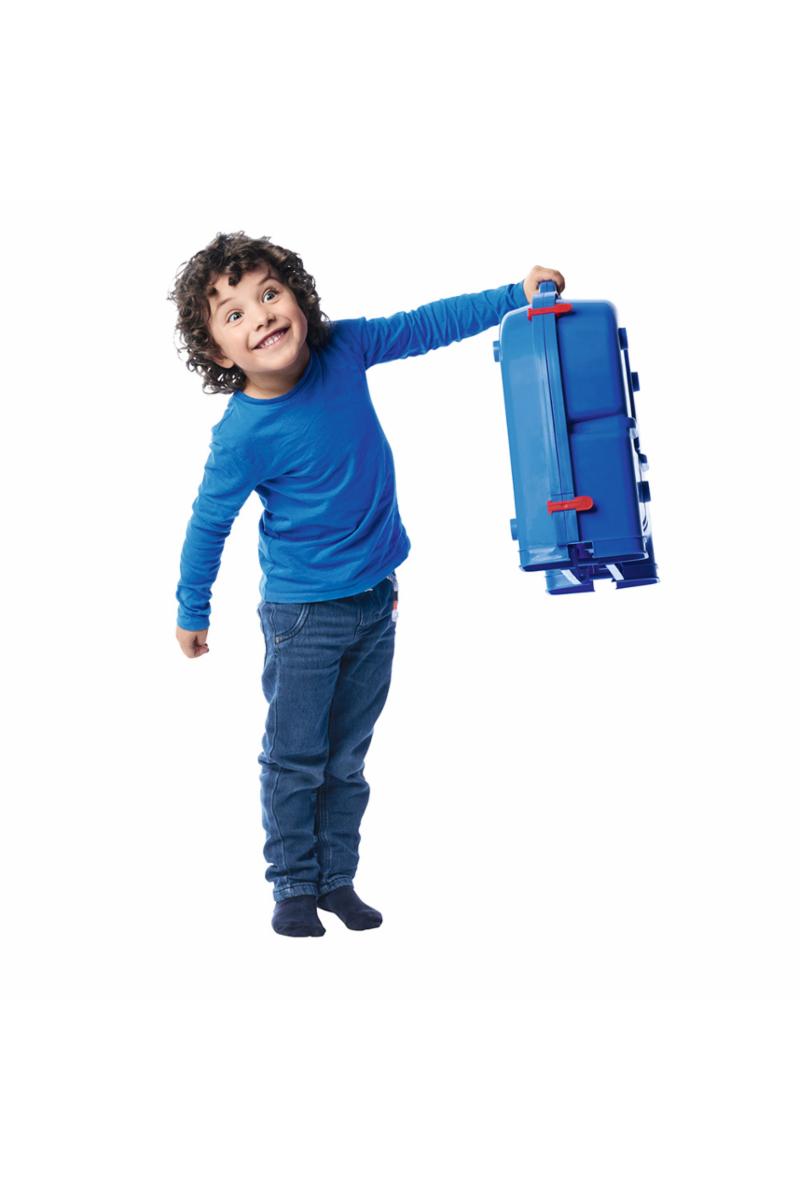 La oss introdusere AquaPlays bestselger, den bærbare SlussBoxen! Flodhesten Wilma er den selvutnevnte kapteinen på containerbåten som ved hjelp av pedalen settes i gang og beveger kjøretøyene fremover i kanalene. Vannivået i låsen reguleres ved hjelp av pumpen og låseportene. I havnen kan du bruke den manuelle kranen til å laste containeren på den amfibiske bilen. Kjør deretter via rampen og broen ned bakken for å losse varene.