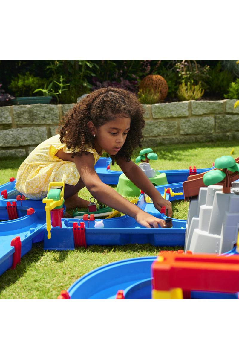 AquaPlays Slussbox tilbyr uendelige lekemuligheter og kan enkelt tas med på ferie eller til venner ved å brette settet som en veske. AquaPlay kan selvfølgelig kombineres med andre av AquaPlay sett og utvidelsesdeler.
