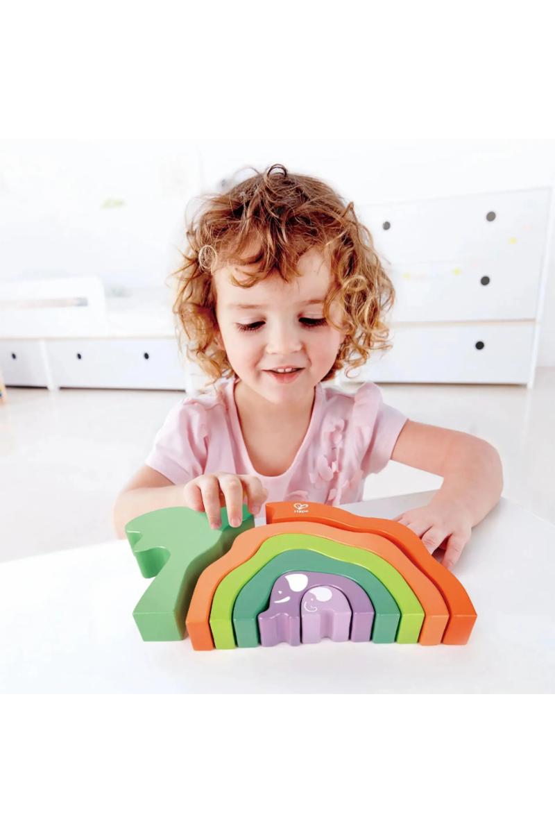 - Barna vil elske å stable disse flotte og unike treklossene om og om igjen – perfekt for å utvikle fargegjenkjenning, romtenkning og fokus