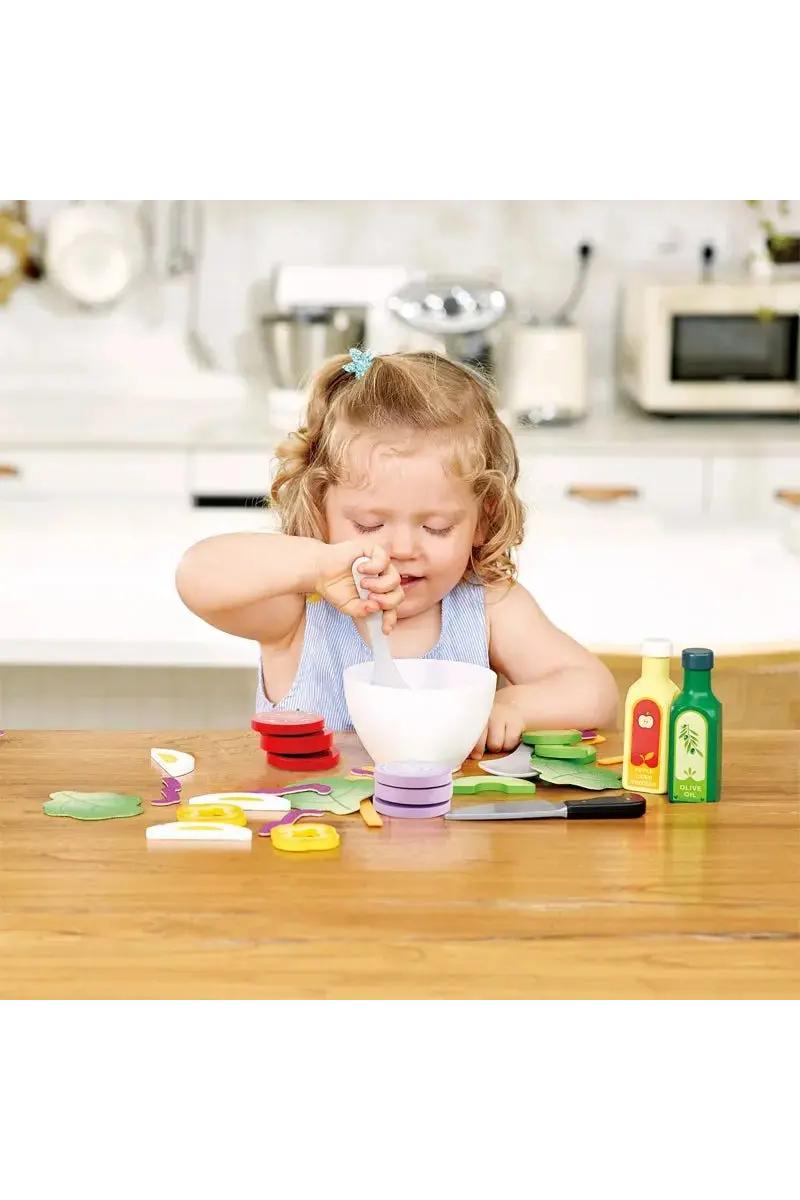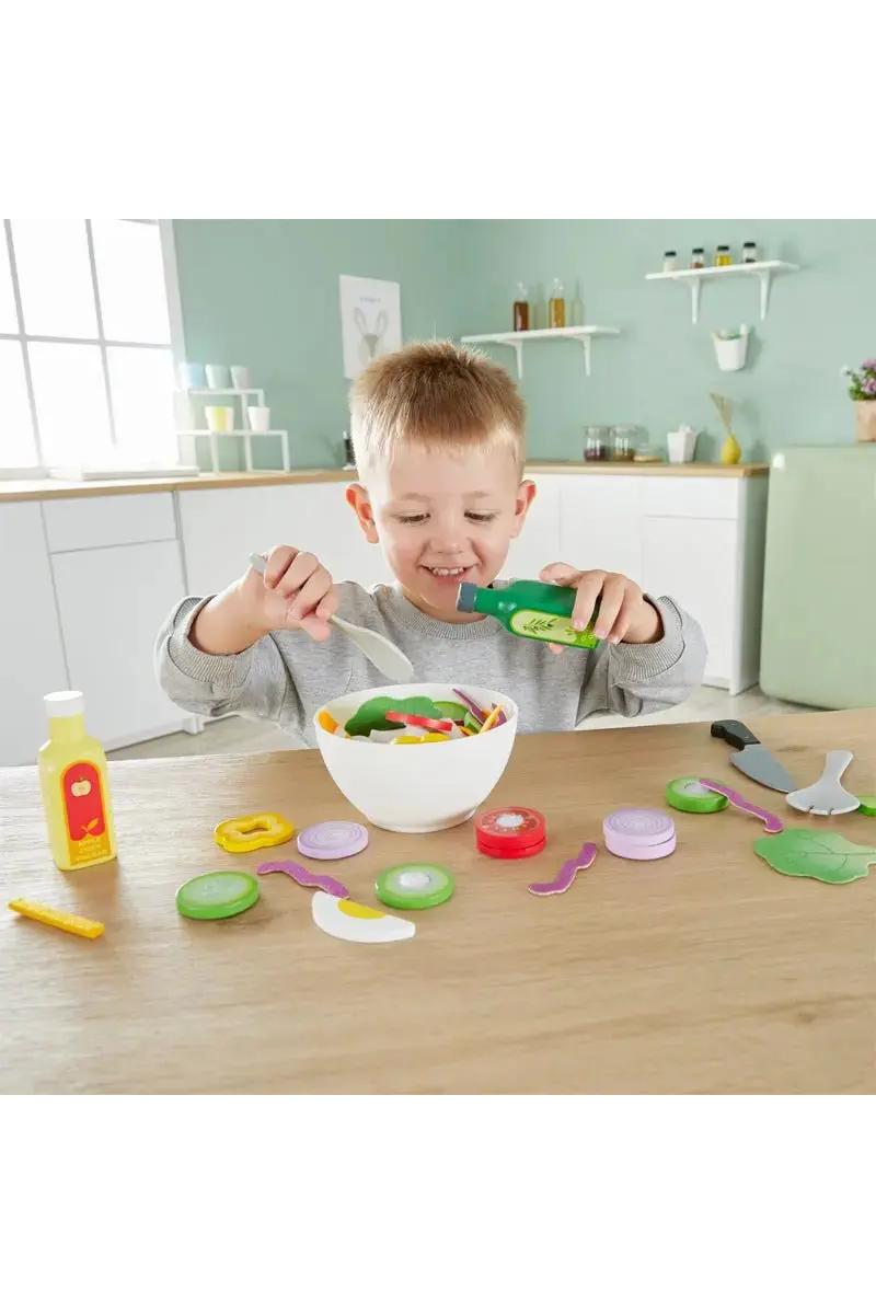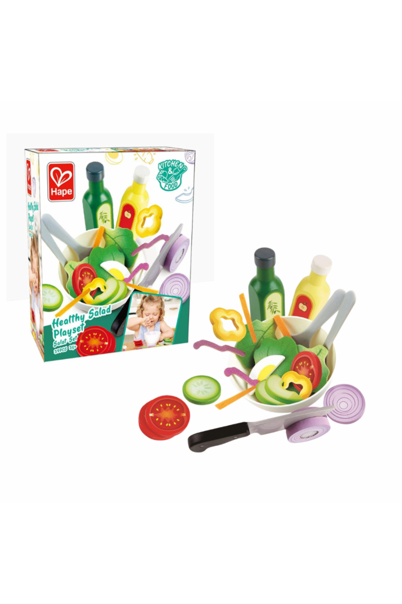 Dette lekesettet er perfekt for å inspirere barn til å utvikle sunne matvaner, samtidig som de blir kjent med forskjellige grønnsaker og salatingredienser på en morsom måte. Salatsettet vil gi timevis med lek og matlaging sammen med familie og venner, samtidig som det oppmuntrer til problemløsning, samarbeid, vennskap og språkutvikling når barna leker sammen.