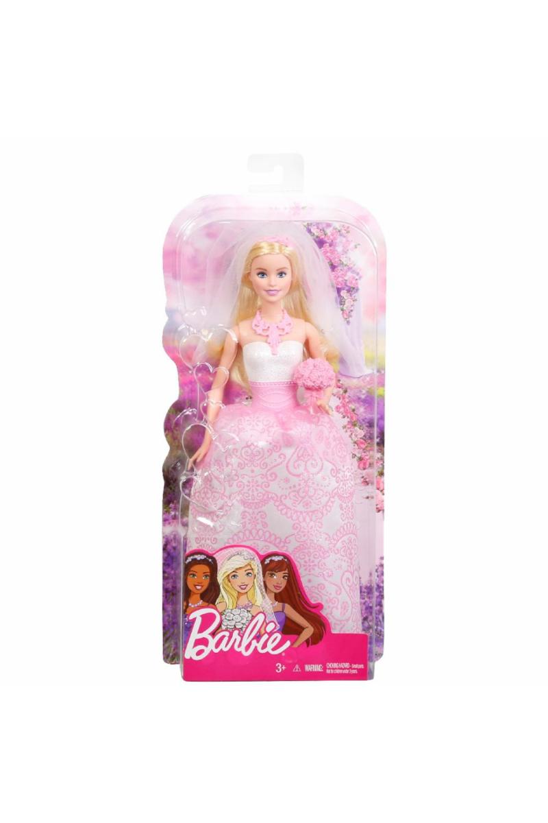 Ta på deg det nydelige statement-kjedet og pannebåndet med slør for å sende denne bruden nedover midtgangen og inn i jentenes fantasi. Etter at I do's har blitt byttet, kaster du den vakre rosa buketten som passer i hånden hennes til bestevennene hennes. Deretter kan du beundre den nydelige gifteringen hennes og gå inn i den magiske eventyrsolnedgangen. Inkluderer Barbie-dukke iført brudekjole og tilbehør som inkluderer et slør (festet til et pannebånd), kjede, sko og håndbukett. Dukken kan ikke stå alene.