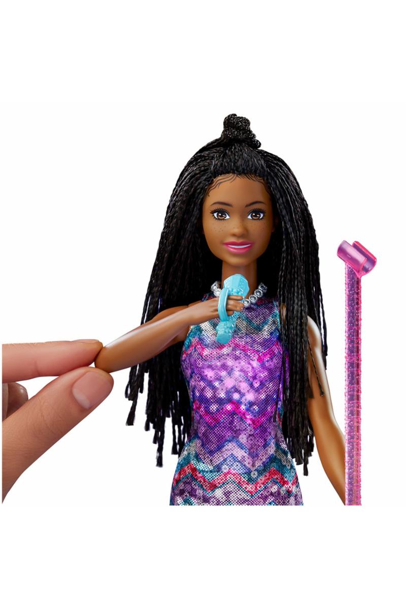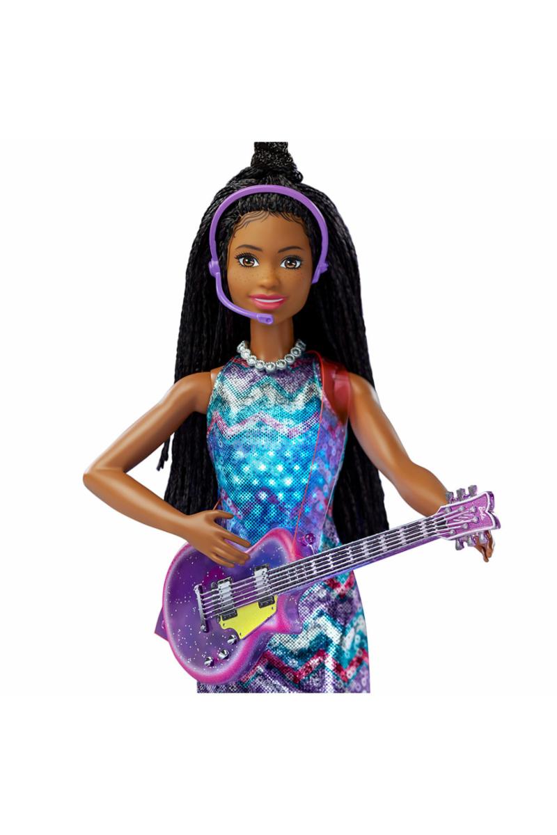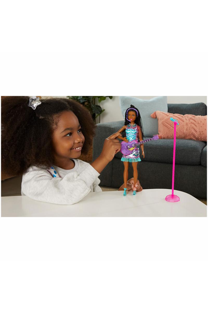 Fantasier kan gjenoppleve et episk øyeblikk med "Brooklyn" Barbie®-dukken i hennes signaturutseende fra Barbie: Big City, Big Dreams ™. Når barna løfter Barbie® dukkemikrofonen til munnen hennes, vil musikk spille, kjolen hennes vil lyse opp, og hun vil "synge" til en av to originale sanger! Når armen hennes hviler ned vil musikken fortsette å spille men Barbie® dukken slutter å "synge", helt til hun løfter mikrofonen igjen -da "synger" hun igjen. Barn i alderen 3 år og oppover kan legge til "Malibu" Barbie®-dukken i samlingen for å fullføre rockin-duetten og forestille seg sine egne store eventyr! Dukken kan ikke stå alene. Farger og dekorasjoner kan variere.