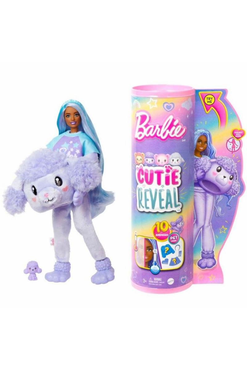 Opplev moroa med Barbie Cutie Reveal-dukkens forvandling i puddelkostyme! Denne sjarmerende Barbie-dukken kommer med et nydelig puddelkostyme og gir deg hele 10 overraskelser når du åpner pakken. Utforsk gleden ved å vrenge kostymetoppen for å avsløre en varm fleecejakke, og endre hårfargen til Barbie med kaldt vann for en unik effekt. Dukken har bevegelige ledd for realistiske poseringer, og den søte mini-puddelen gir ekstra sjarm til leken. Oppdag spennende tilbehør i de fire overraskelsesposene, inkludert et lyseblått satengskjørt, sko, hårbøyle og kam. Gi barnet ditt en morsom og fantasifull lekeopplevelse med Barbie Cutie Reveal-dukken i puddelkostyme!