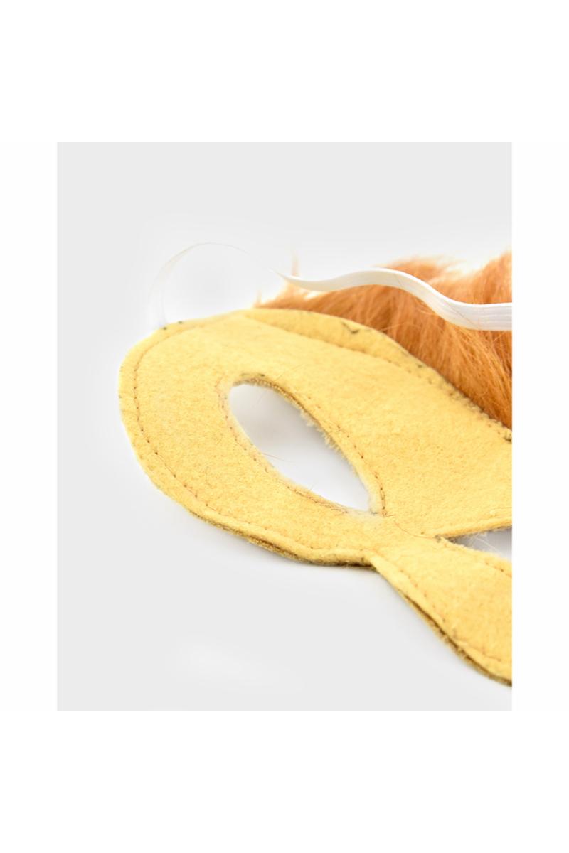 flott løvemaske som lett kan fremkalle et brøl eller to. Masken har en korthåret front med fin og luftig manke, mens ryggen er tovet for å være ekstra behagelig mot huden. Elastisk bånd for å holde masken på plass.