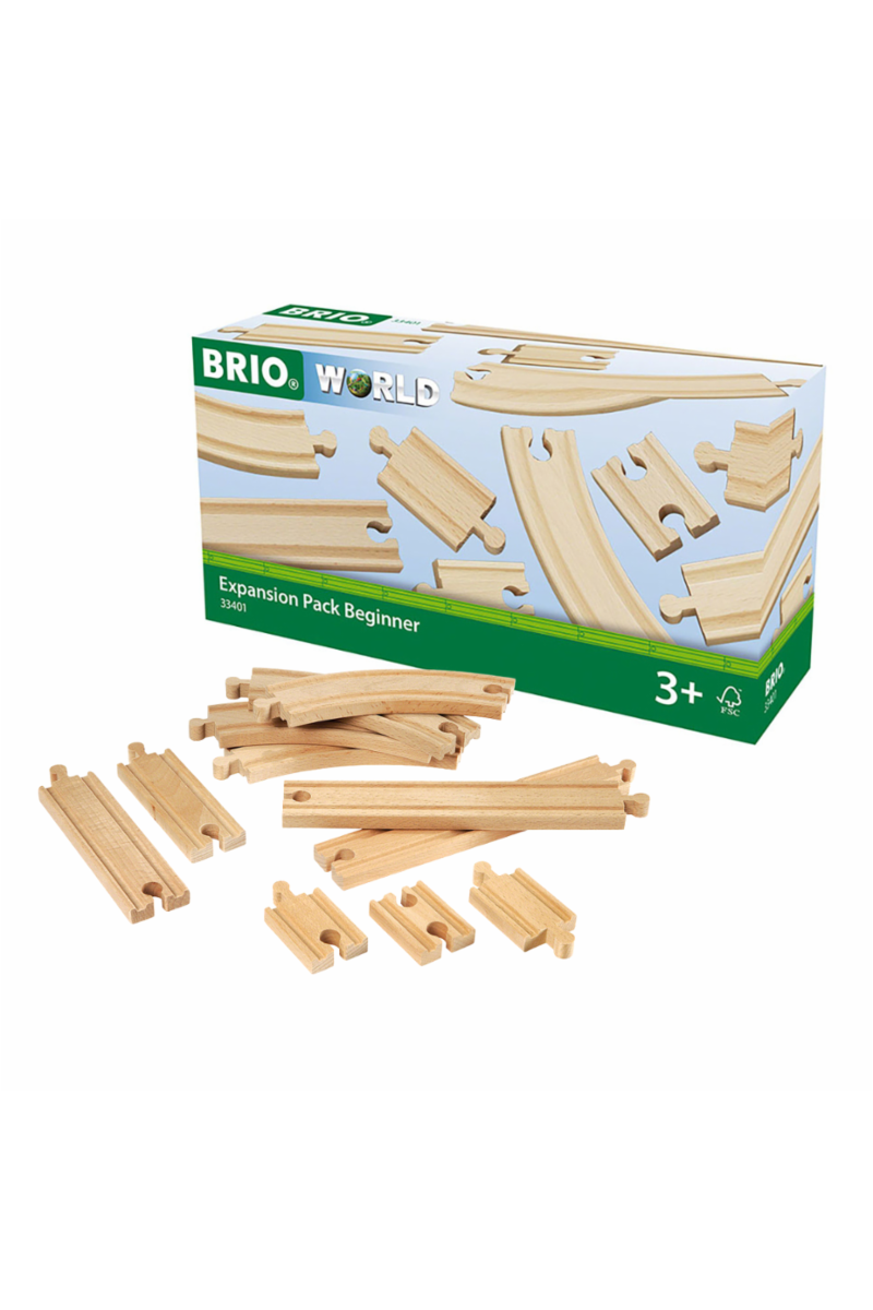 Ekstra skinner for utvidelse av BRIO togbanen. Med 11 skinner og byggebeskrivelse til 5 ulike baner.