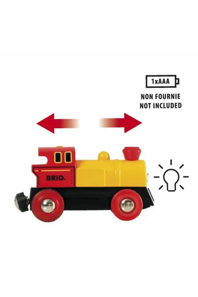Få opp dampen med dette røde, klassiske batteridrevne lokomotivet. Med både forover- og revers-funksjon i tillegg til lysende frontlykter blir dette en gøyal følgesvenn på togbanen