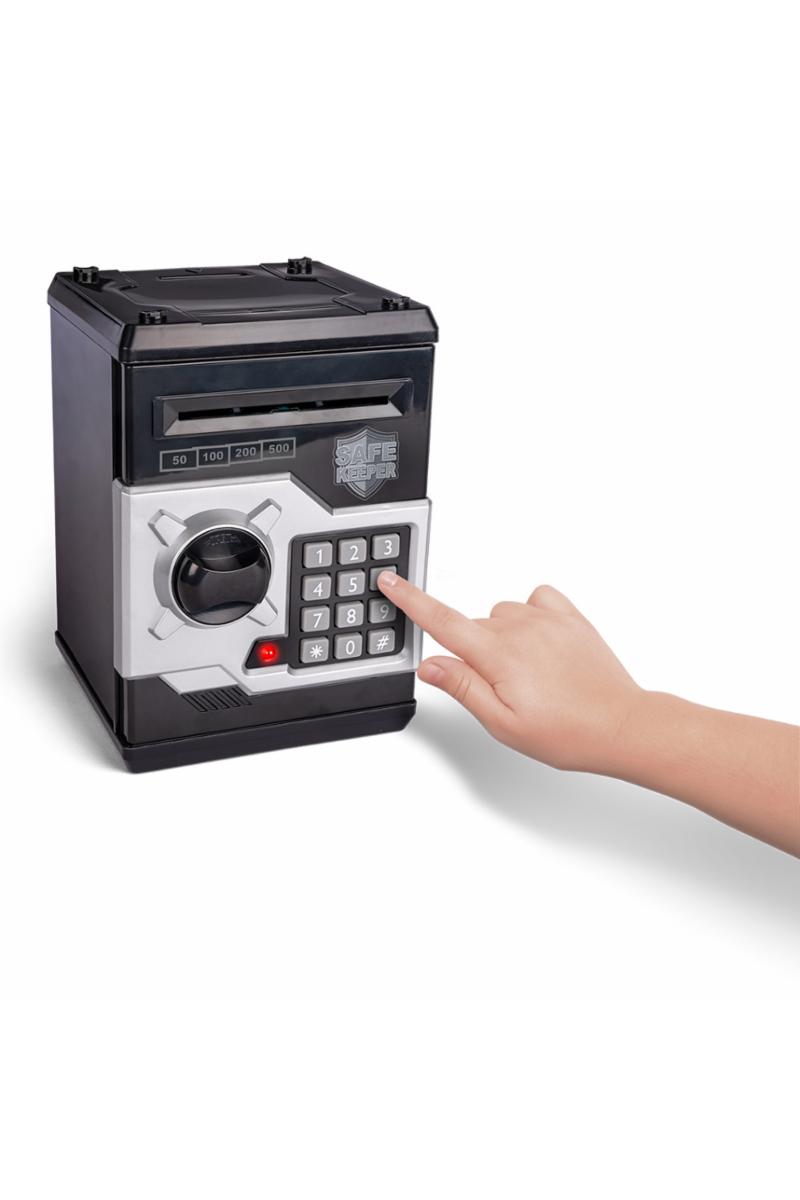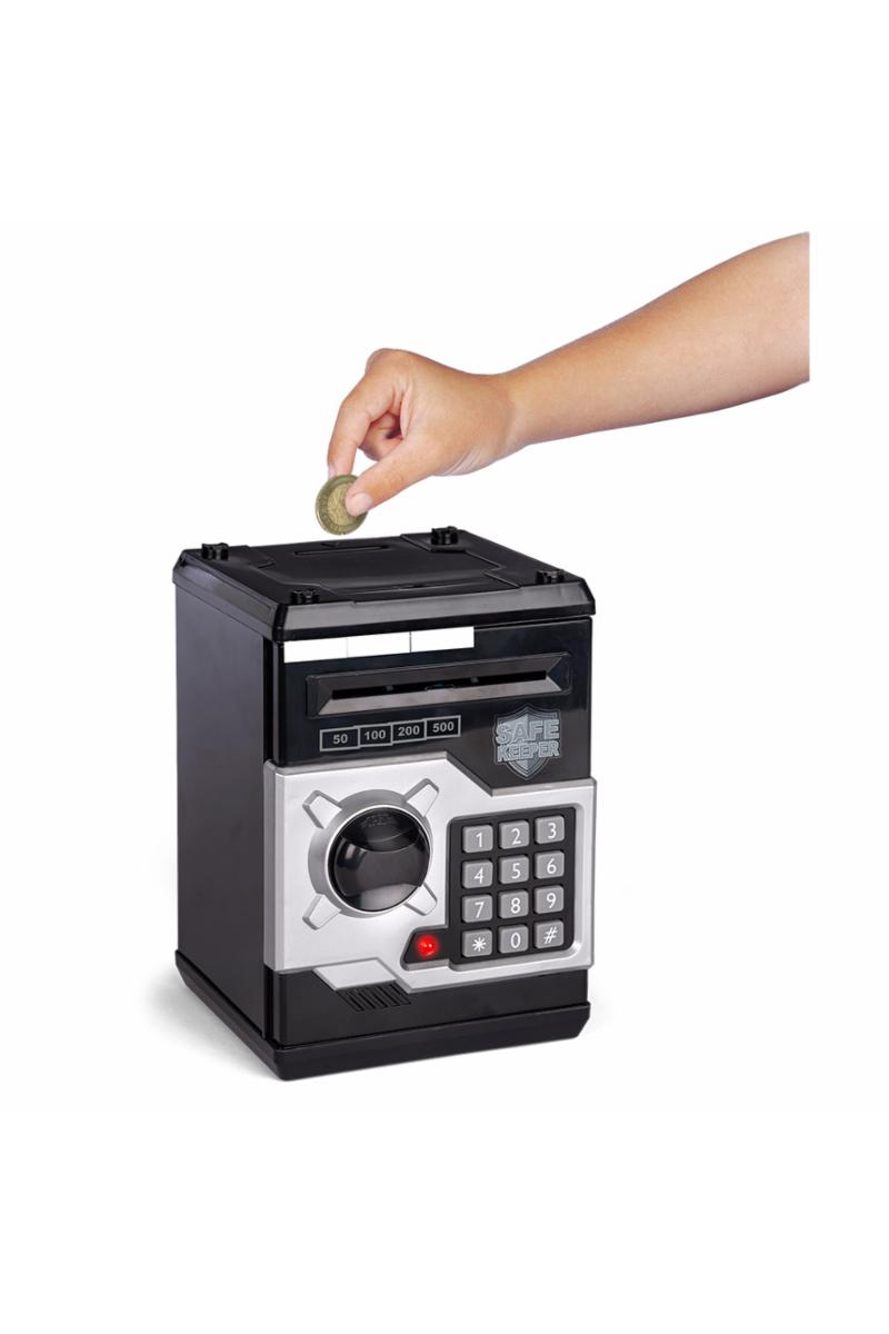 Hold verdisakene dine trygge med Safe Box med lys og lyd! Dette pengeskapet har en seddelmater og myntinnkast i toppen, noe som gjør det enkelt å lagre penger. Med lys- og lydeffekter blir det en spennende opplevelse for barna å bruke. Man kan lage sin egen personlige kode for å kunne åpne den. Perfekt for å lære om sparing og økonomi på en morsom måte!