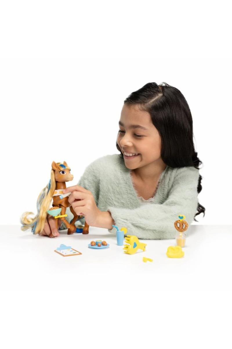Zoey er den ultimate sportsfanen! Hennes blå fargestripe står for hennes besluttsomhet, sportsånd og vilje til å støtte vennene sine. Zoey er alltid klar for å feire med en god kombinasjon av lemonade og pretzels etter et spennende sportsarrangement. Hun kommer med flere pretzel- og drikke-tilbehør, samt myke moteaccessoirer, og selvfølgelig en stylingbørste for å sørge for at manen hennes alltid ser perfekt ut. Er du klar for en pretzel-fest med Zoey?