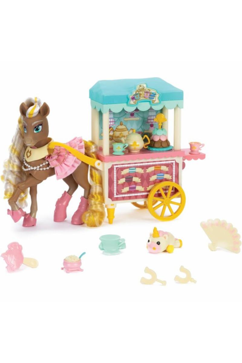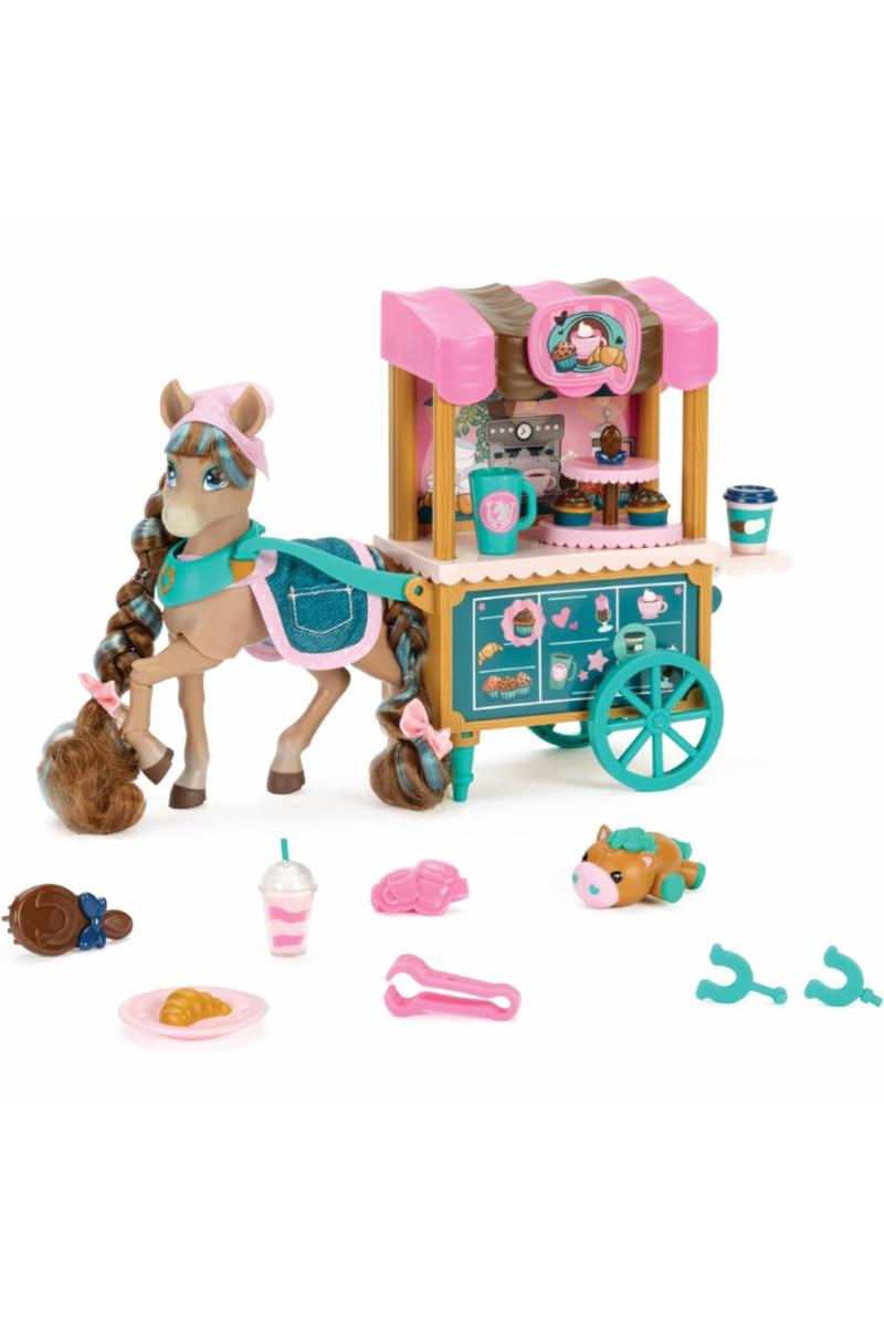 Cocoa er den trofaste vennen med en blå stripe som symboliserer hennes lojalitet. Hun er klar for å servere tropiske drikker og bakverk fra sin Bakery Café-vogn, og kommer med tilbehør som hårbøyle, kosedyr og stylingbørste for å holde manen på plass.