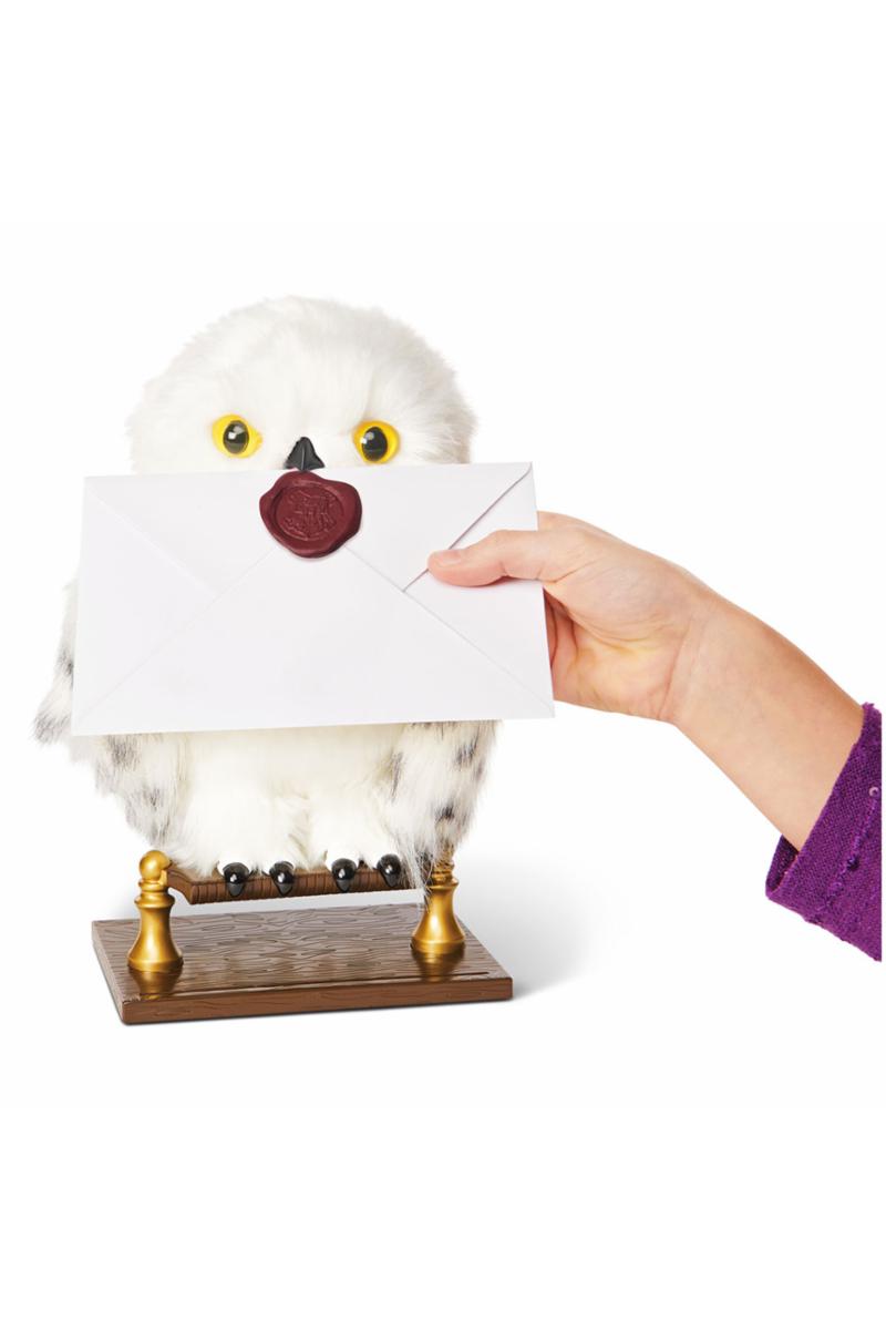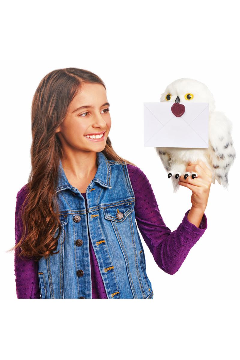Gjenopprett dine favoritt Harry Potter-scener med Wizarding World Fortyllende Hedwig! Med over 15 realistiske lyder og bevegelser og supermykt plysjmateriale bringer Fortyllende Hedwig den ikoniske Harry Potter uglen til liv. Oppdag Hedwigs magiske trekk. Hedwig elsker å være kjæledyr! Med "ruffle detection" kan hun ane på hvilken måte du klapper henne. For kjærlig kvitring og hodebevegelser, klapp henne fra fronten og bakover - hun liker ikke å ha fjærene krøllete bakover og vil fortelle deg hvordan hun føler om det! Legg fingeren i nebbet, så napper hun lekent når hun er lykkelig! Fortryllende Hedwig kjenner også igjen stemmen din. Når du snakker mykt og forsiktig, svarer hun med en lyd for å vise deg at hun lytter. Hvis du snakker for høyt, vil hun svare med noen egne høye lyder! Sett Hedwig tilbake på plass og skriv en spesiell melding til en venn. Skyv notatet inn i Hogwarts-konvolutten og hjelp Hedwig med å levere det! Hun holder konvolutten i munnen og vil med glede bare gi den ut til riktig person med en hemmelig interaktiv kode - stryk hodet tre ganger og Hedwig vil gi slipp på konvolutten! Kos og klapp Hedwig og børst henne for å fortsette å holde henne lykkelig. Deretter kan du levere en ny melding og leke om og om igjen! Med så mange spennende funksjoner, vil dette fortryllende Hedwig ugle-leketøyet inspirere fantasien din gjennom morsomt og spennende late-spill. Denne interaktive Hedwig plysjuglen er den perfekte Harry Potter-gaven for barn fra 5 år og oppover. Ta med deg din egen Wizarding World Fortryllenede Hedwig og opplev magien til Harry Potter!