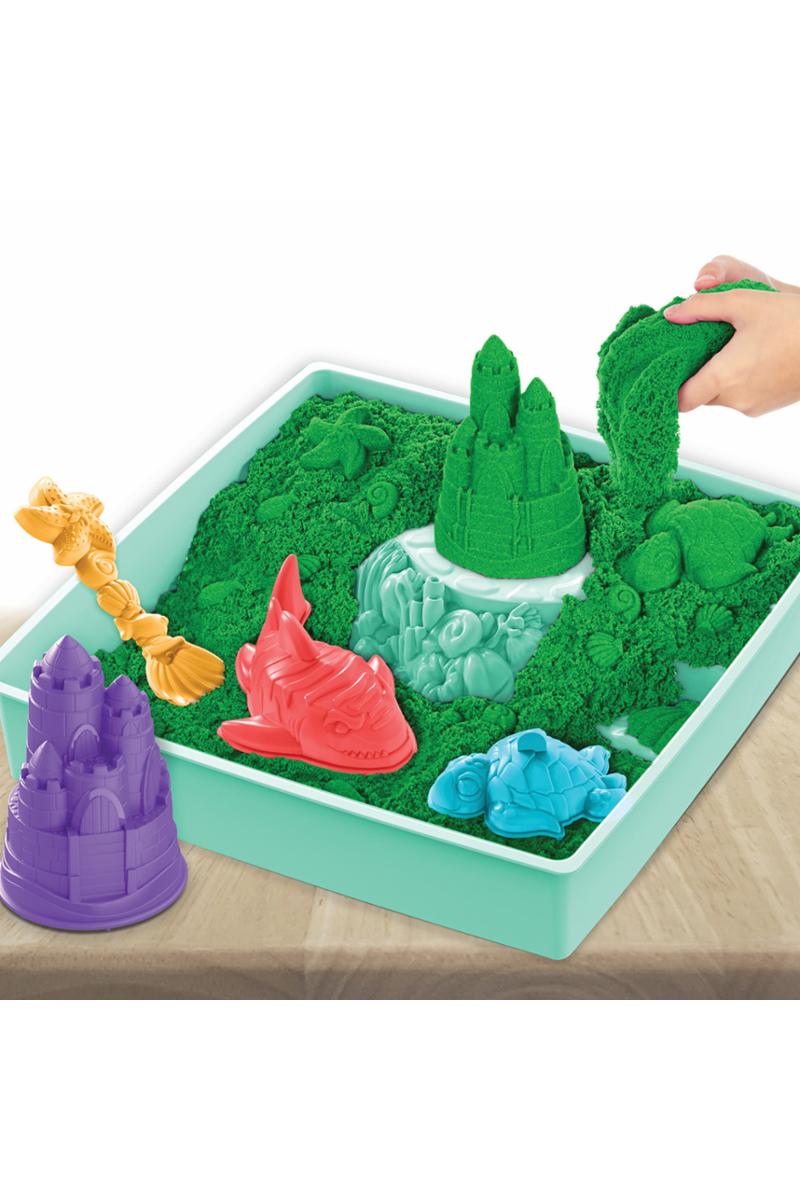 - Dette Kinetic Sand-settet inkluderer til og med et to-lags sandkassebrett for innesluttet lek, perfekt for innendørs