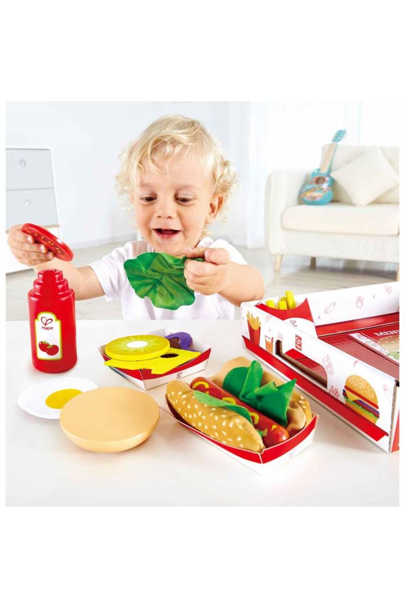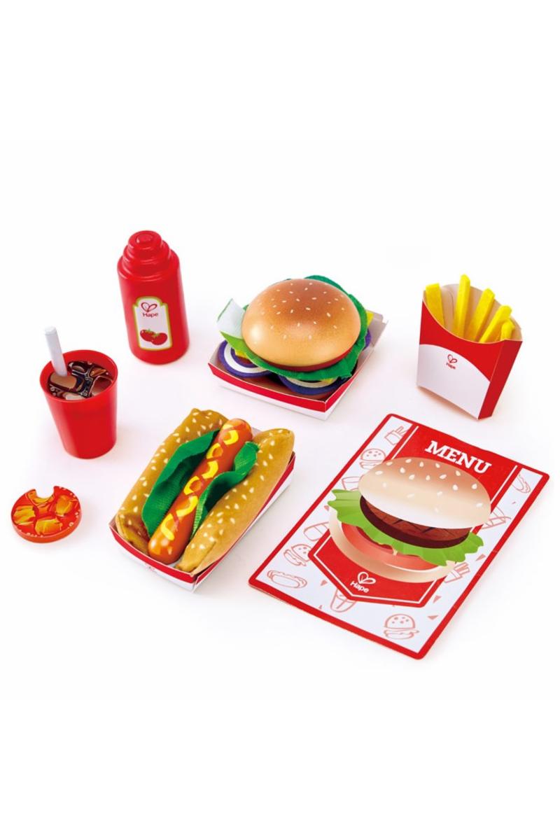 Gjør deg klar for et morsomt og lærerikt måltid med dette lekesettet med fast food-tema fra Hape! Med sine fargerike og realistiske elementer gir dette amerikansk-inspirerte settet barna muligheten til å utforske matlaging og servering på en kreativ måte. Dette lekesettet er ikke bare morsomt, men også en flott måte for barna å utvikle sosiale ferdigheter, kreativ tenkning og forståelse for hvordan man lager og serverer mat. La leken begynne!