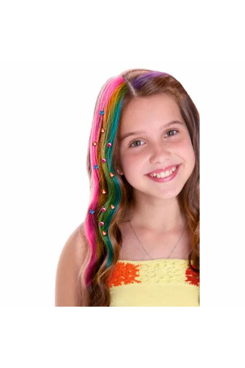 La barnet ditt skape fantastiske frisyrer med dette kreative hårdekorasjonssettet! Settet inkluderer en maskin for å sette pyntesteiner i håret, hele 150 pyntesteiner, 4 hårkrittkammer i ulike farger og 5 fargerike hårstrikker. Perfekt for å lage unike, fargerike frisyrer med glitter og stil.