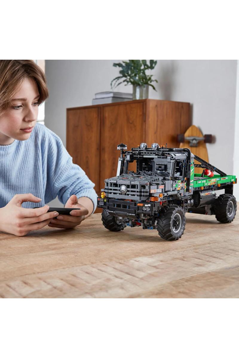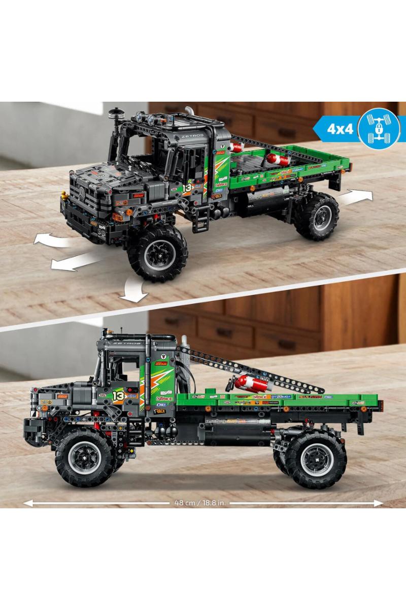 Den firehjulsdrevne Mercedes-Benz Zetros konkurransetrucken kan takle allslags terreng. Nå kan du bygge deg en LEGO® Technic modell av dette tøffe kjøretøyet. Gled deg over en engasjerende byggeopplevelse. Etterpå kan du manøvrere kjøretøyet ved hjelp av CONTROL+ appen og betjene differensiallåsen. Lag en hinderløype av hindringer og flagg. Finnes det noe som kan stoppe denne kraftige konkurransetrucken?