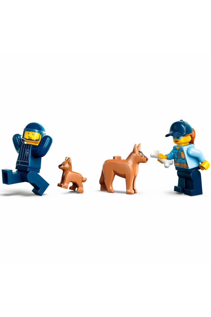Voff, voff! Bli med når LEGO® City politiets hundepatrulje trener hundene sine. Last utstyret på hengeren – og husk matskålene! Hjelp den ivrige politihunden og valpen inn i hundepatruljens tøffe SUV, og dra til treningsområdet. Vel fremme kan du rigge til vippebrettet, hinderet og balanseskivene for å gjøre alt klart til en gøyal treningsdag.