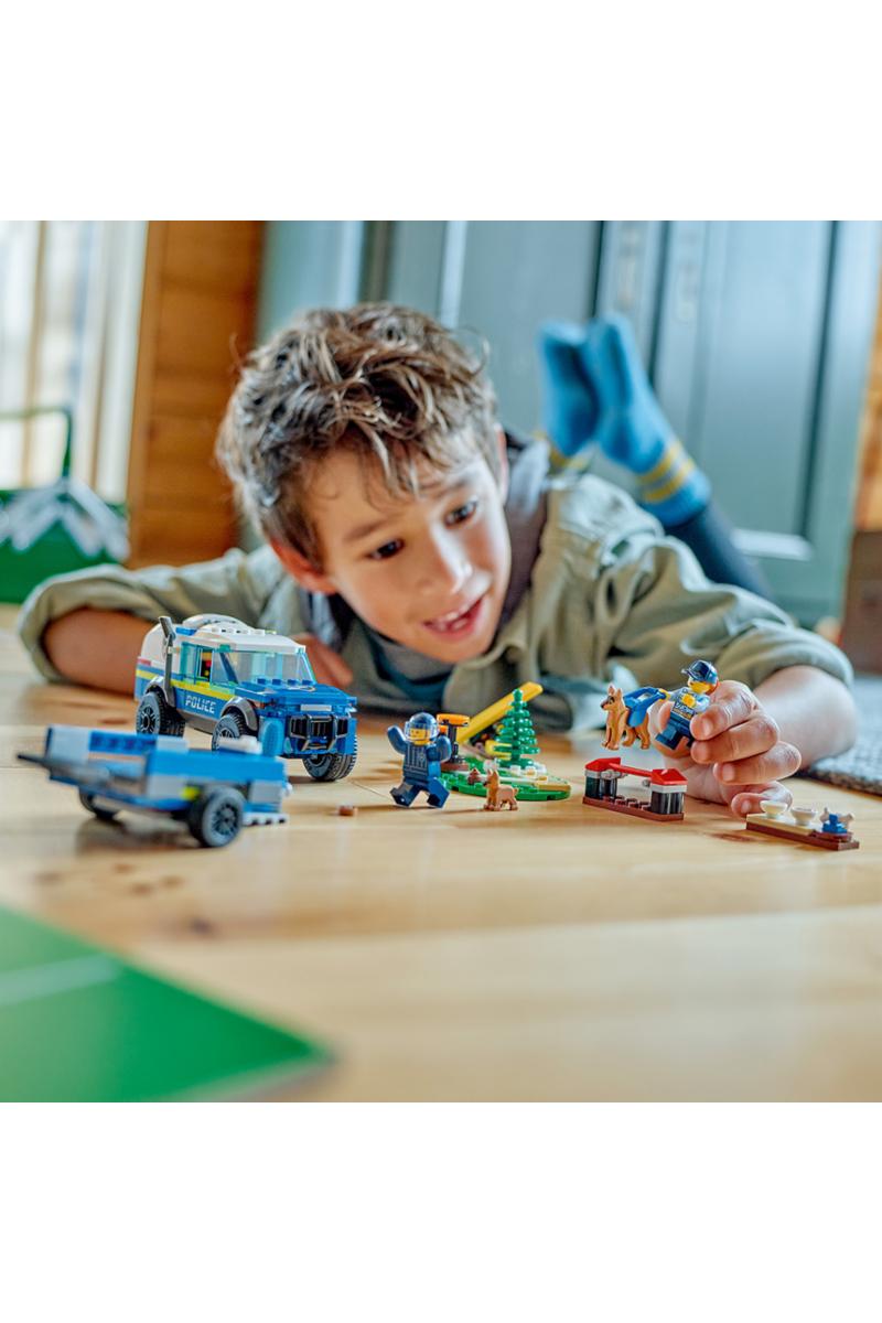 - Treningssett med politihund – settet LEGO® City Mobilt treningssett for politihunder (60369) inspirerer barn til å finne på utallige fantasifulle historier med hunder