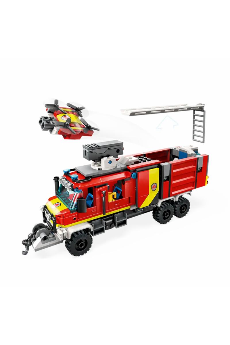 Bli med når LEGO® Citys brannkonstabler kjører av sted i sin hypermoderne kommandobil. Kjøretøyet har alt som trengs til redningsoppdrag! Slokk brannen med spesielle flammeslokkingselementer fra kommandobilens brannslokker og brannslokkingsdrone. Flytt tunge objekter med kommandobilens vinsj. Hvis det blir for hett, kan du sende ut den bakkegående dronen med robotarm. Gjør deg klar til handling!