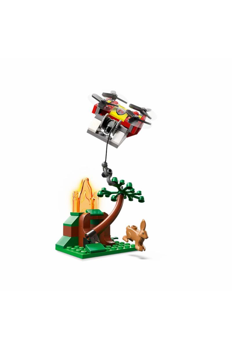 - Hva inneholder esken? Alt barn trenger for å bygge et brannslokkingskjøretøy med brannslokkingsdrone, bakkegående drone og kontrollsenter samt brannscenario fra skog og by, tre minifigurer og en harefigur
