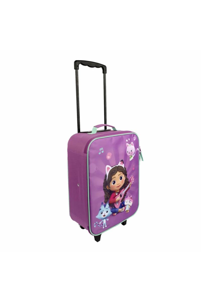 Utforsk verden med Gabbys dukkehus trillekoffert, skreddersydd for små eventyrere! Denne trillekofferten måler 46 x 32 x 16 cm. Hovedrommet, utstyrt med en toveis glidelås og hengelås, gir rikelig med plass til alle nødvendigheter. Elastiske stropper holder tingene trygt på plass under reisen.